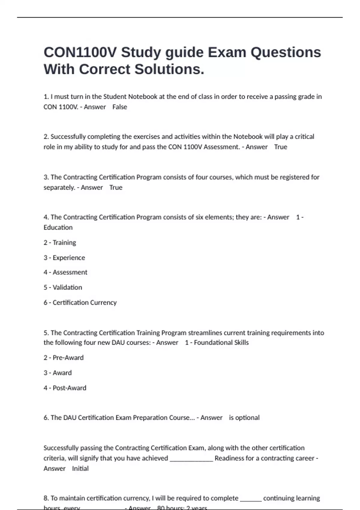 4. The Contracting Certification Program consists of six elements; they are: - Answer 1 -