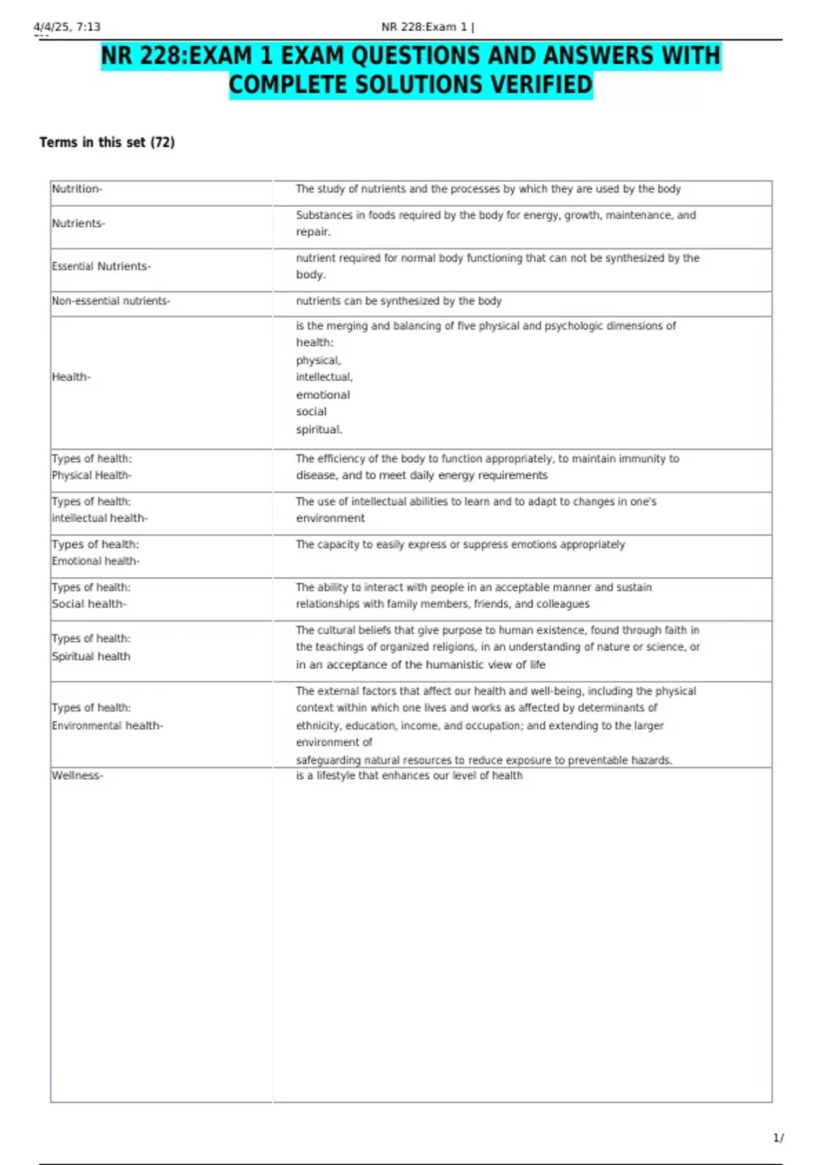 NR 228:EXAM 1 EXAM QUESTIONS AND ANSWERS WITH