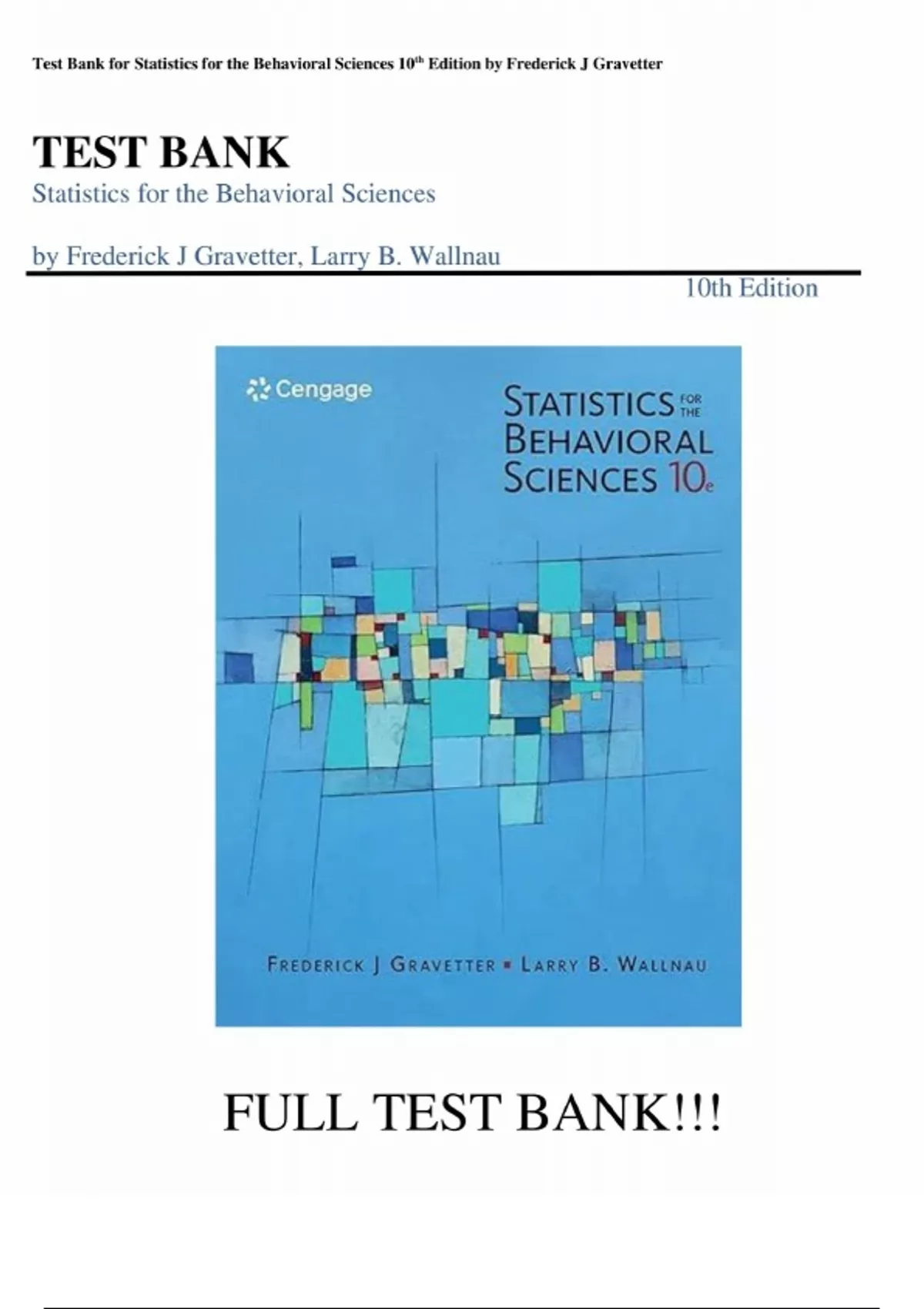 Test Bank for Statistics for The Behavioral Sciences 10th Edition Frederick J Gravetter, Larry B. Wallnau, All chapters 1-18 complete ,Newest update