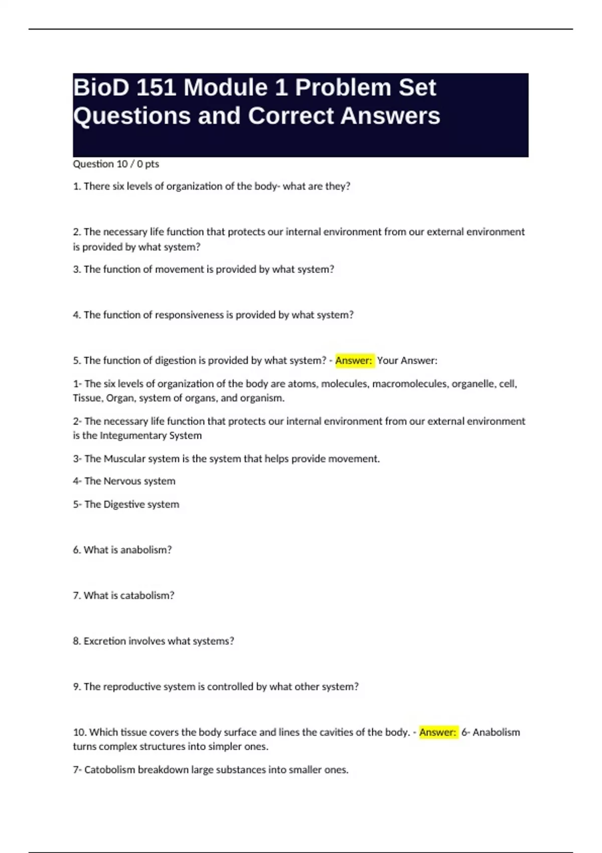 10. Which tissue covers the body surface and lines the cavities of the body. - Answer: 6- Anabolism