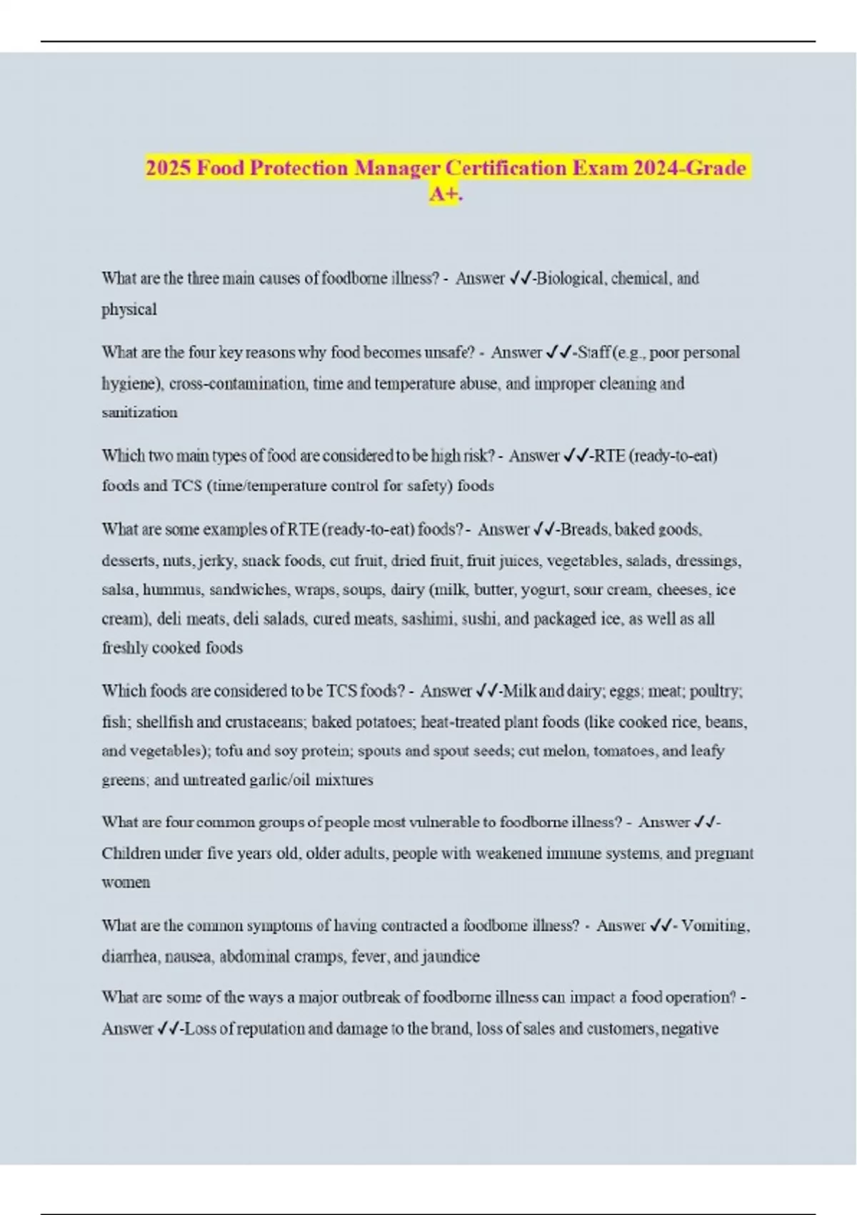 2025 Food Protection Manager Certification Exam 2024-Grade A+.