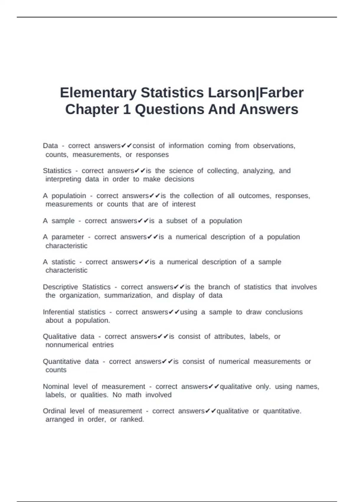 Elementary Statistics Larson|Farber Chapter 1 Questions And Answers