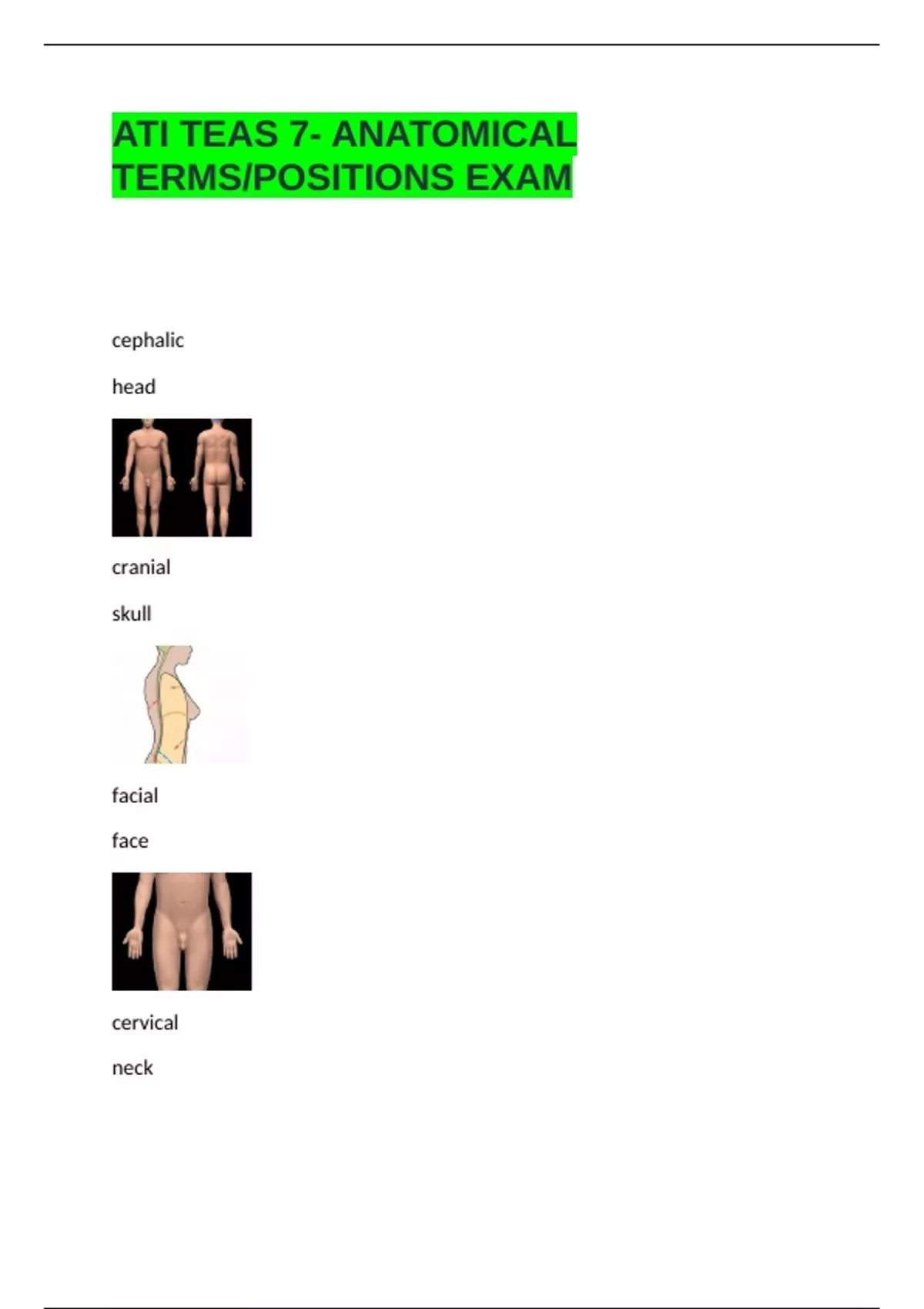 ATI TEAS 7- ANATOMICAL TERMS-POSITIONS EXAM WITH ACCURATE SOLUTIONS