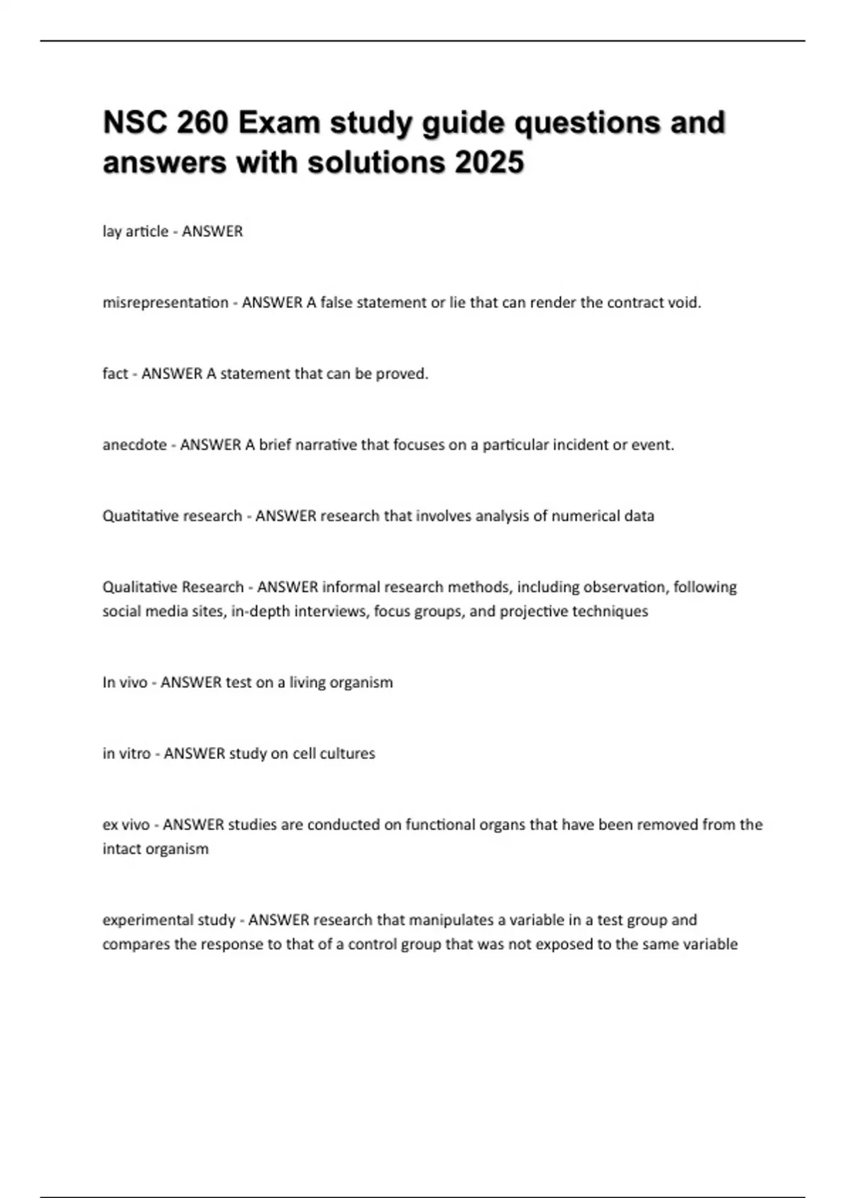 NSC 260 Exam study guide questions and answers with solutions 2025.
