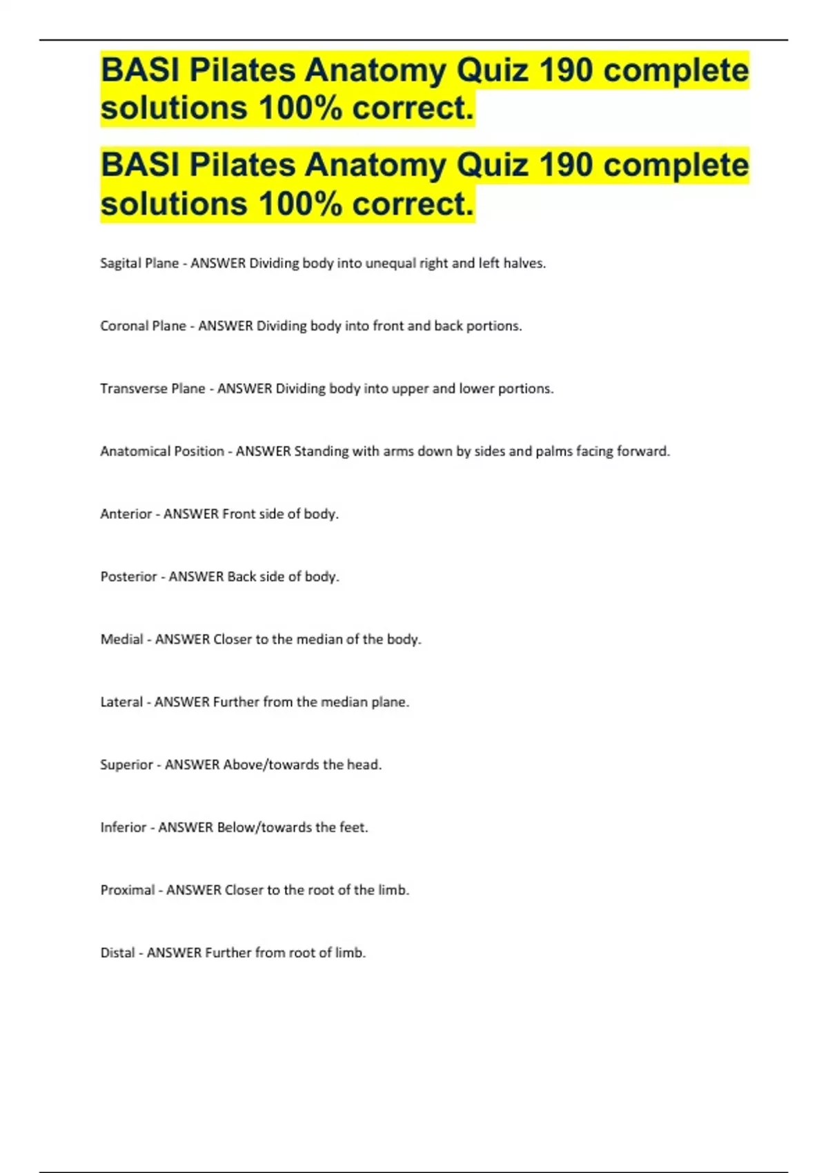 Transverse Plane - ANSWER Dividing body into upper and lower portions.