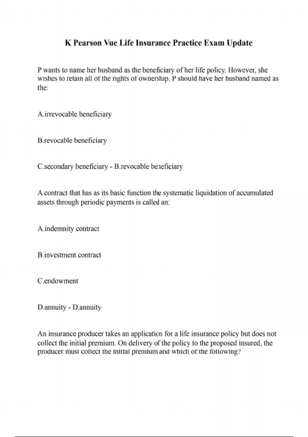 A.A copy of the MIB report B.The insured's signed statement of continued good health C.A copy of the conditional receipt D.A copy of the temporary insurance agreement that covered the period between the application date and the delivery date. - B.The insured's signed statement of continued good health An employer can deduct premium payments as an ordinary business expense for which of the following life coverages? A.Buy and Sell Agreements B.Group C.Key Employee D.Joint Life, if the business is named as the beneficiary - B.Group A producer takes applications from identical twins who want to buy the same type of policy in the same amount. The insurer issues the policies as applied for, but charges a 25 percent higher premium for one of the policies. The difference in premiums is probably due to which of the following factors? A.Incontestability