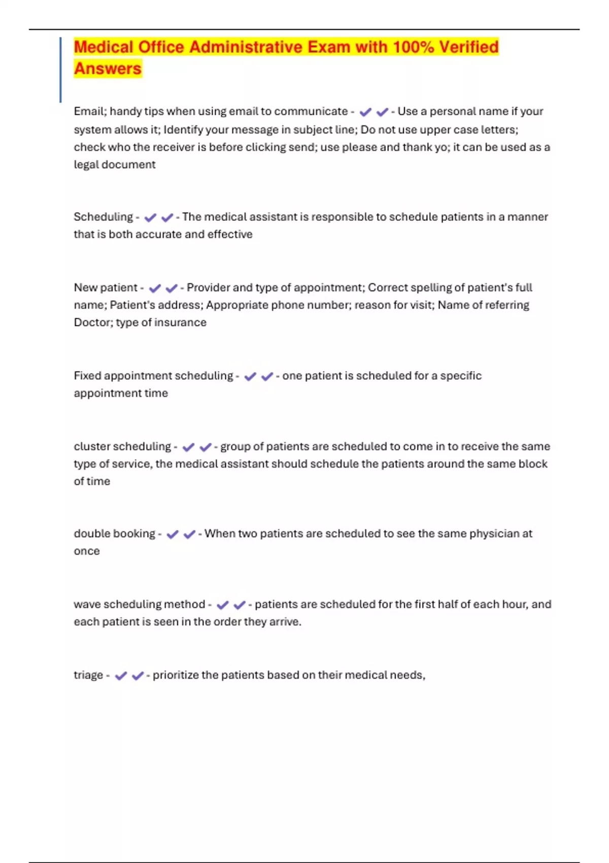 , Medical Office Administrative Exam with 100% Verified