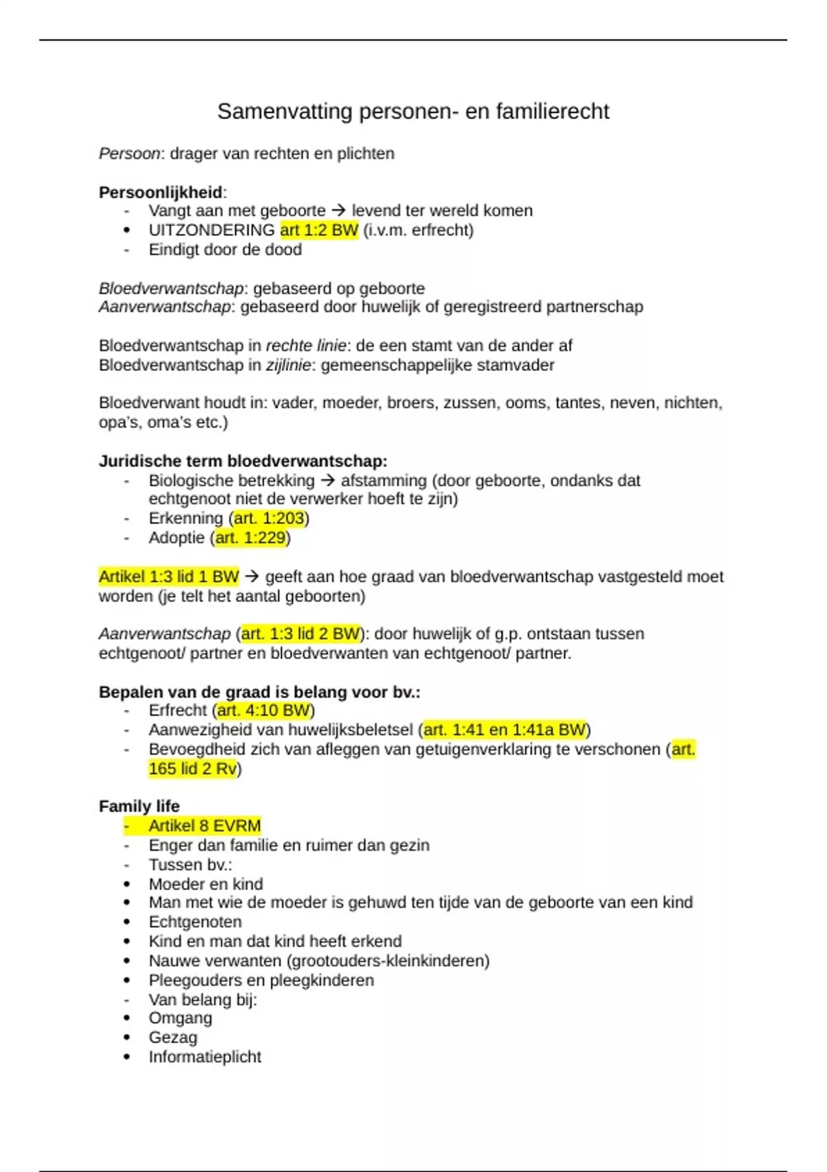 Samenvatting personen- en familierecht