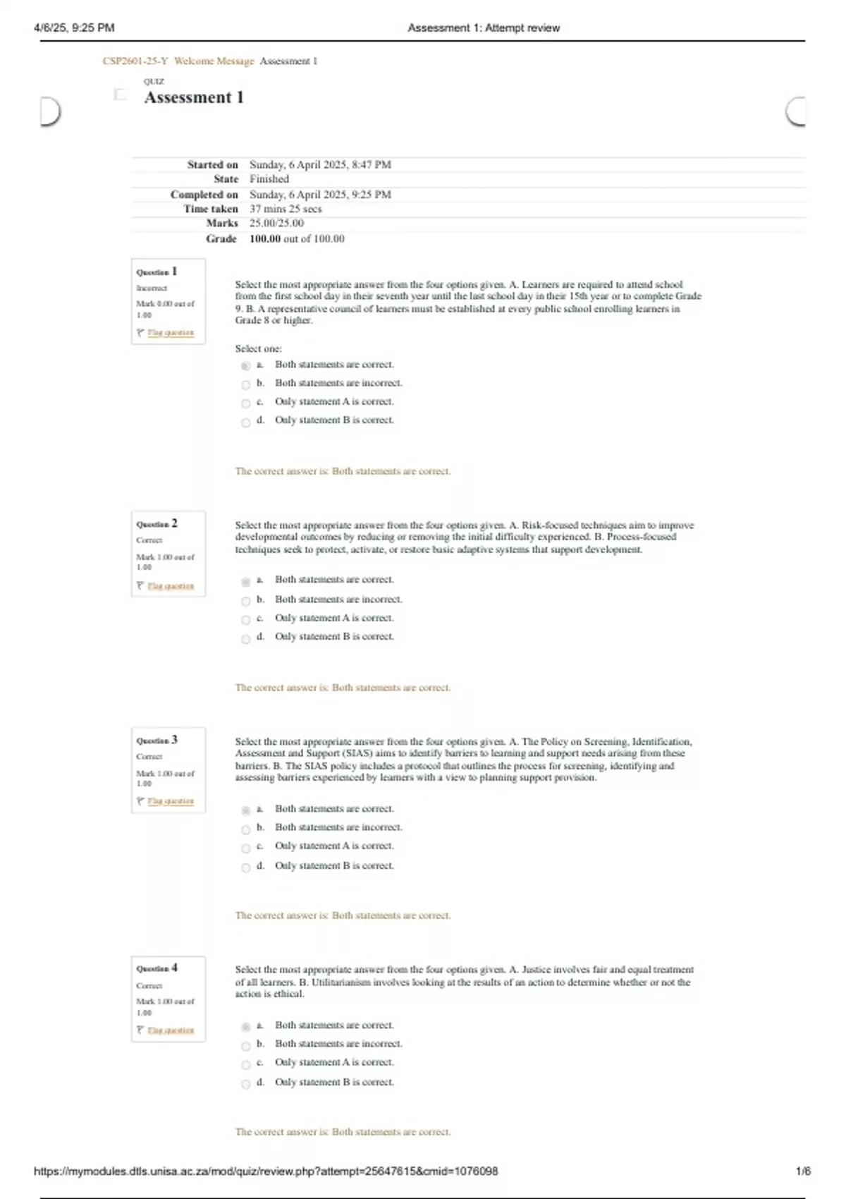 , 4/6/25, 9:25 PM Assessment 1: Attempt review