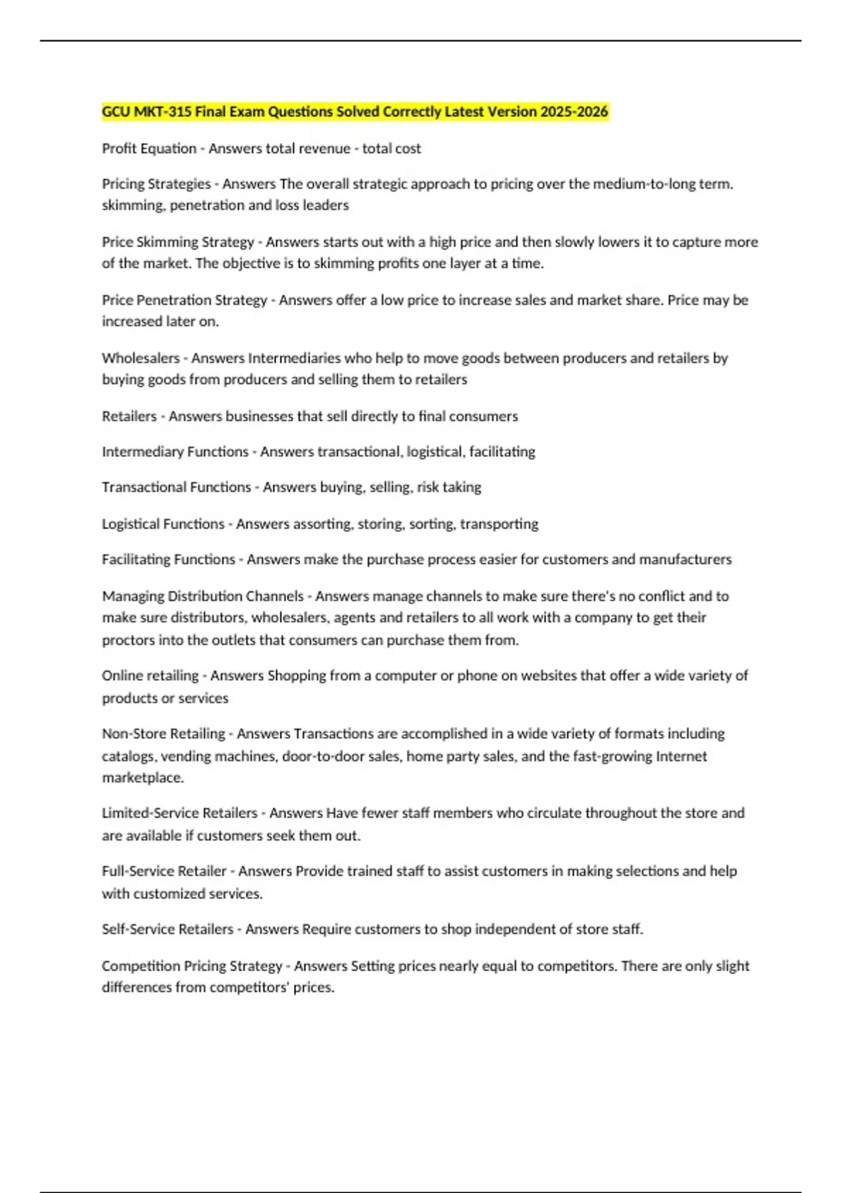 Pricing Strategies - Answers The overall strategic approach to pricing over the medium-to-long term.