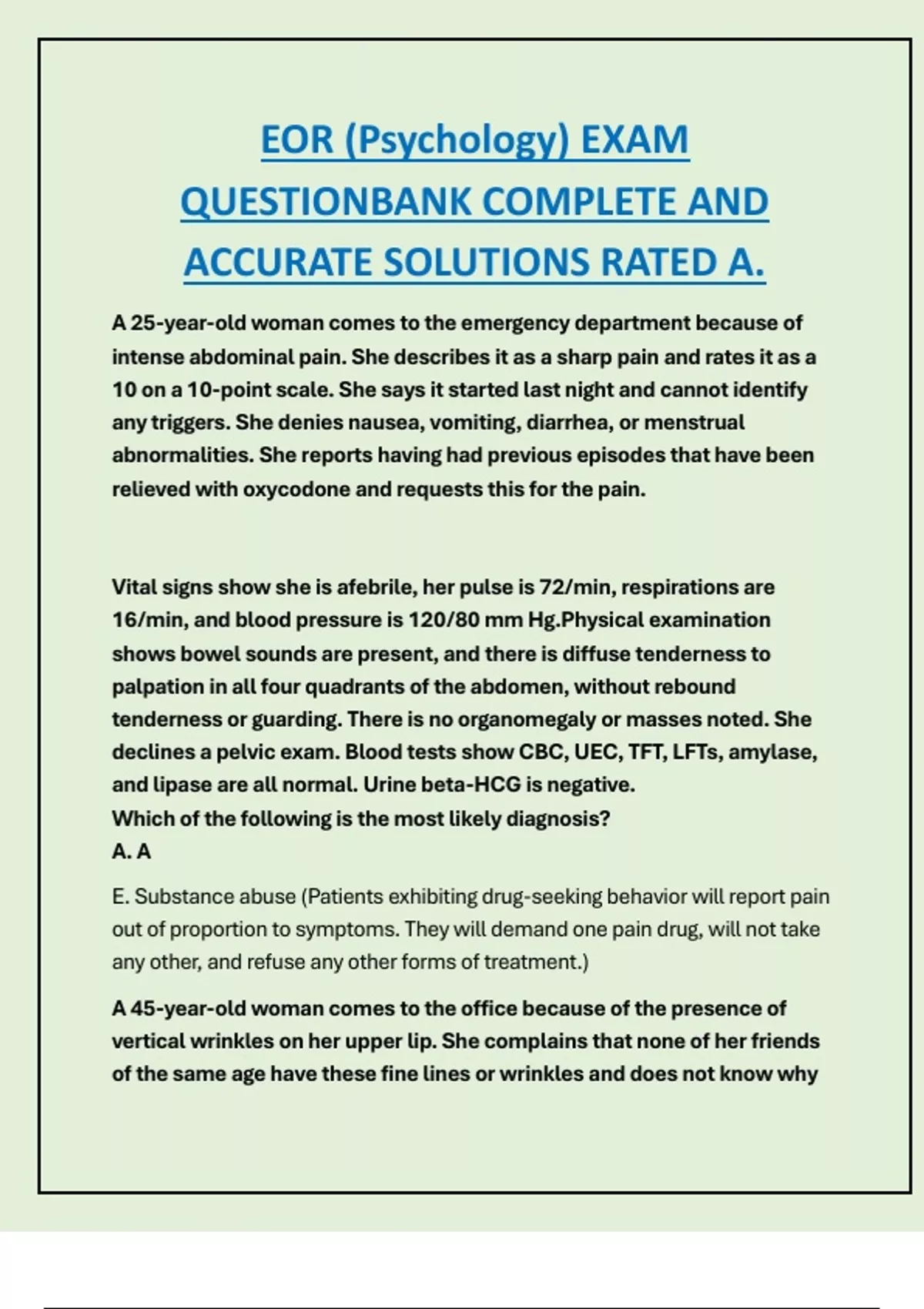 declines a pelvic exam. Blood tests show CBC, UEC, TFT, LFTs, amylase,