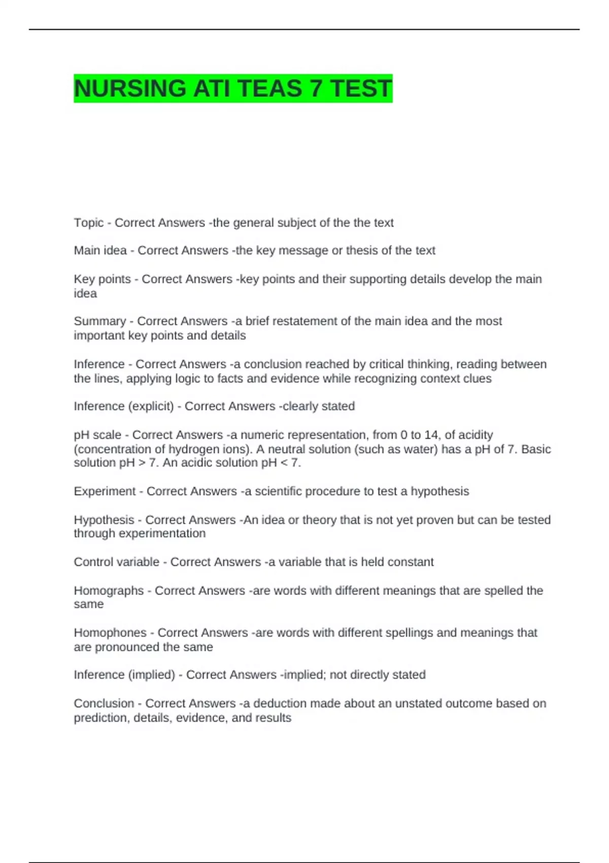 NURSING ATI TEAS 7 TEST