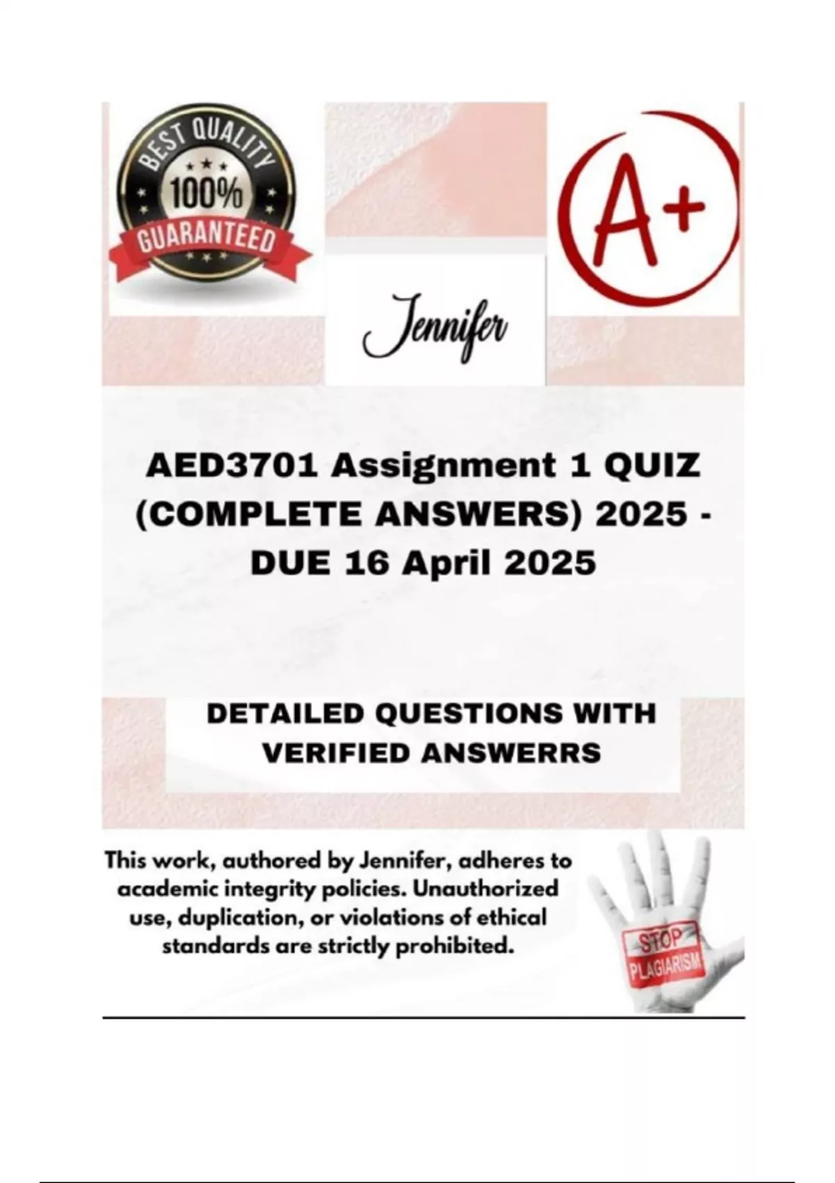 AED3701 Assignment 1 QUIZ (COMPLETE ANSWERS) 2025 - DUE 16 April 2025; 100% correct solutions and explanations.