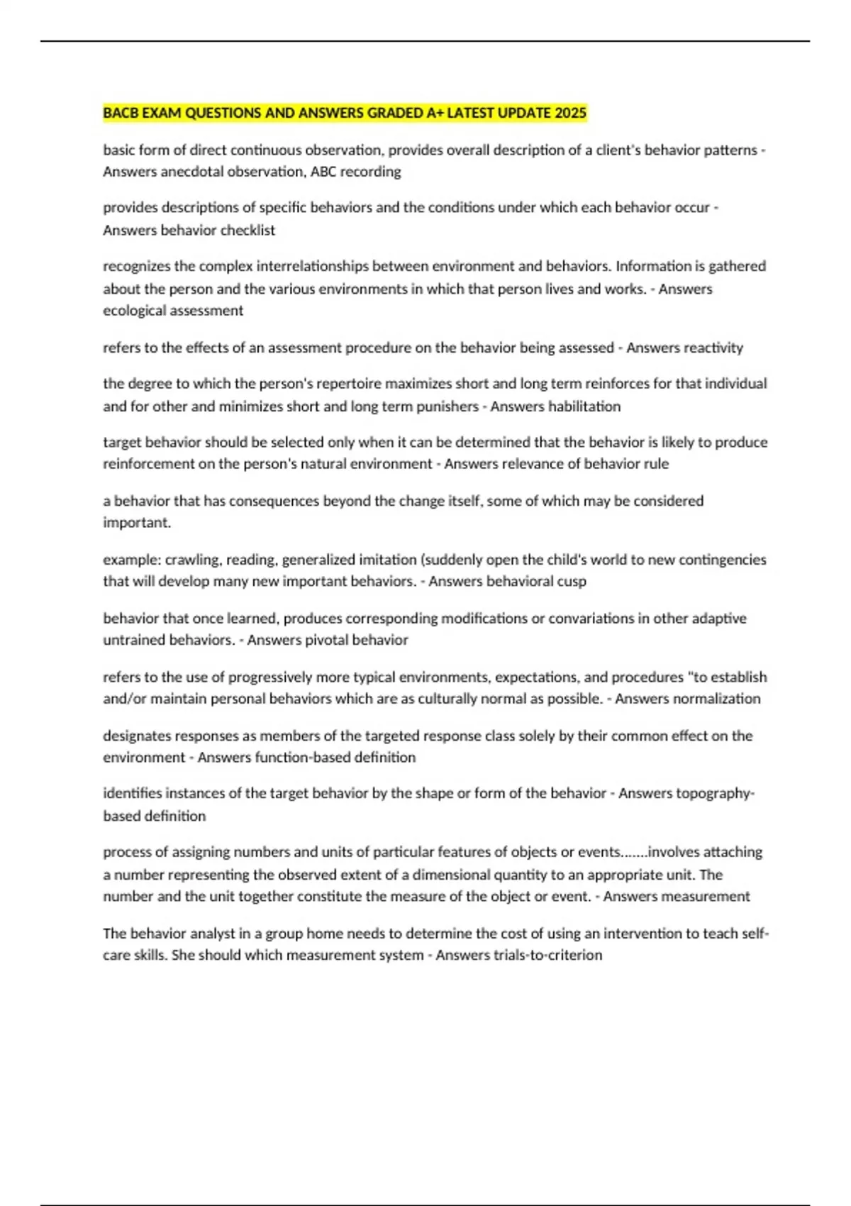 provides descriptions of specific behaviors and the conditions under which each behavior occur -