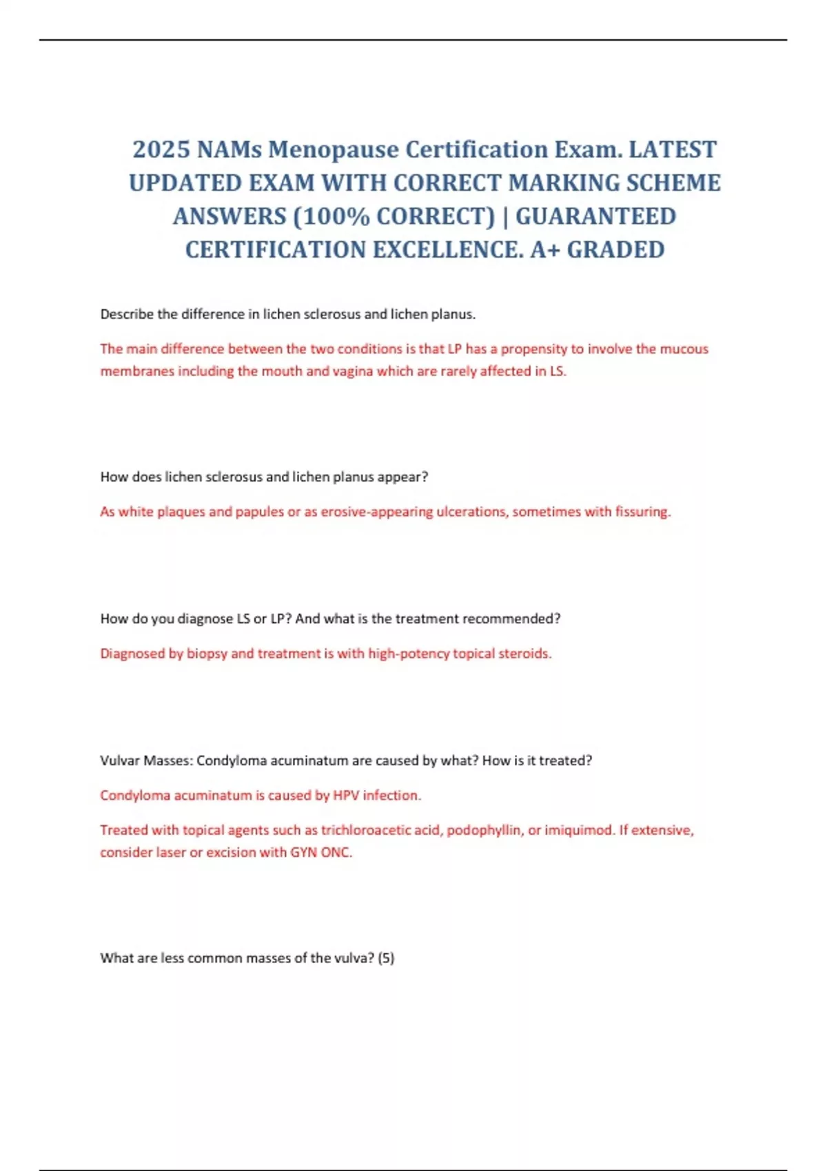 2025 NAMs Menopause Certification Exam. LATEST UPDATED EXAM WITH CORRECT MARKING SCHEME ANSWERS (100% CORRECT) | GUARANTEED CERTIFICATION EXCELLENCE. A+ GRADED