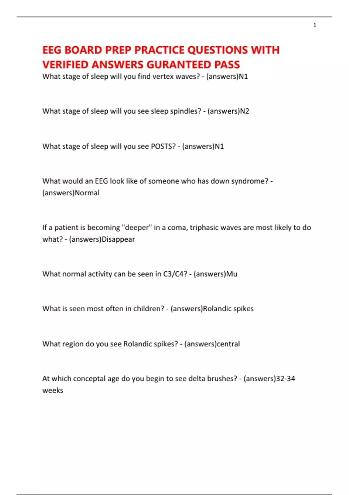 EEG BOARD PREP PRACTICE QUESTIONS WITH VERIFIED ANSWERS GURANTEED PASS