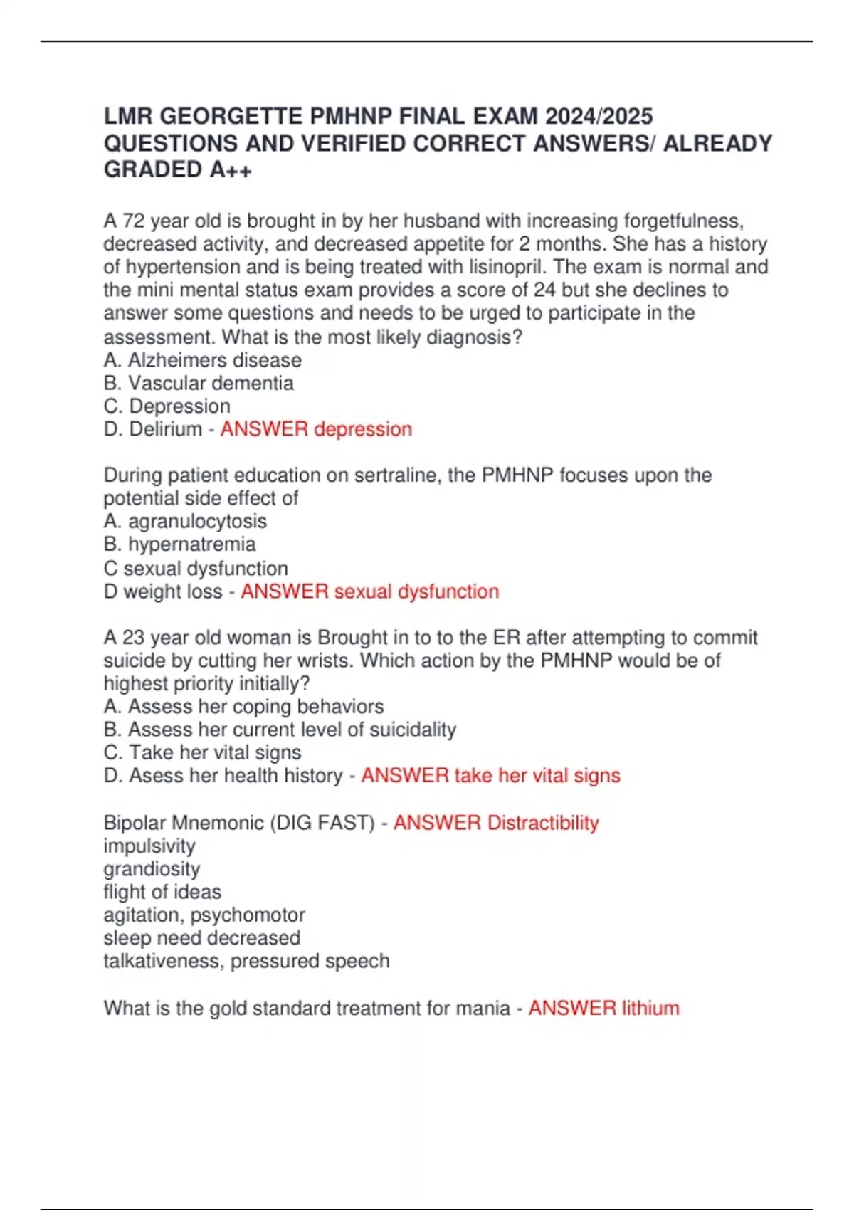LMR GEORGETTE PMHNP FINAL EXAM 2024/2025