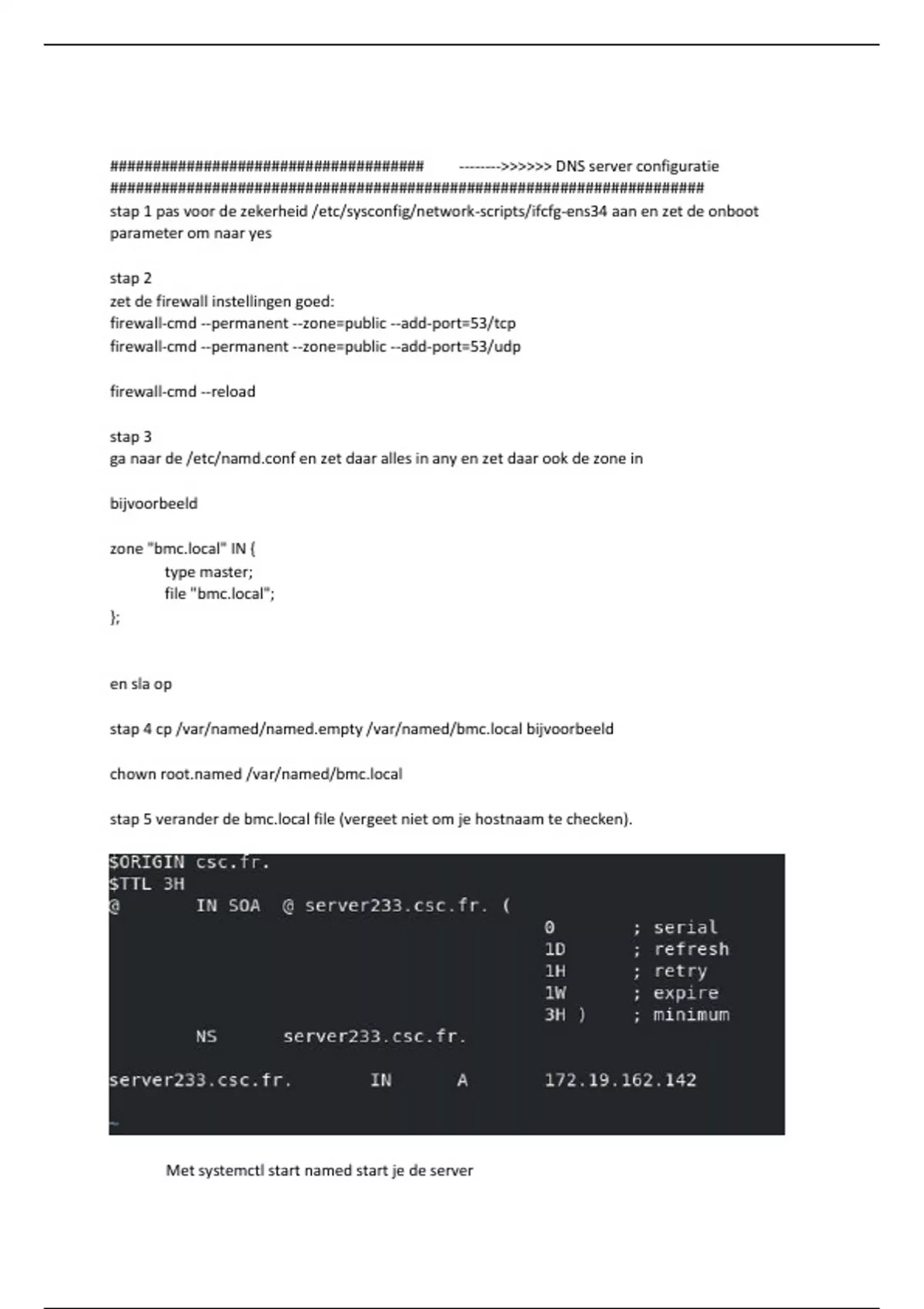 stap 4 cp /var/named/named.empty /var/named/bmc.local bijvoorbeeld