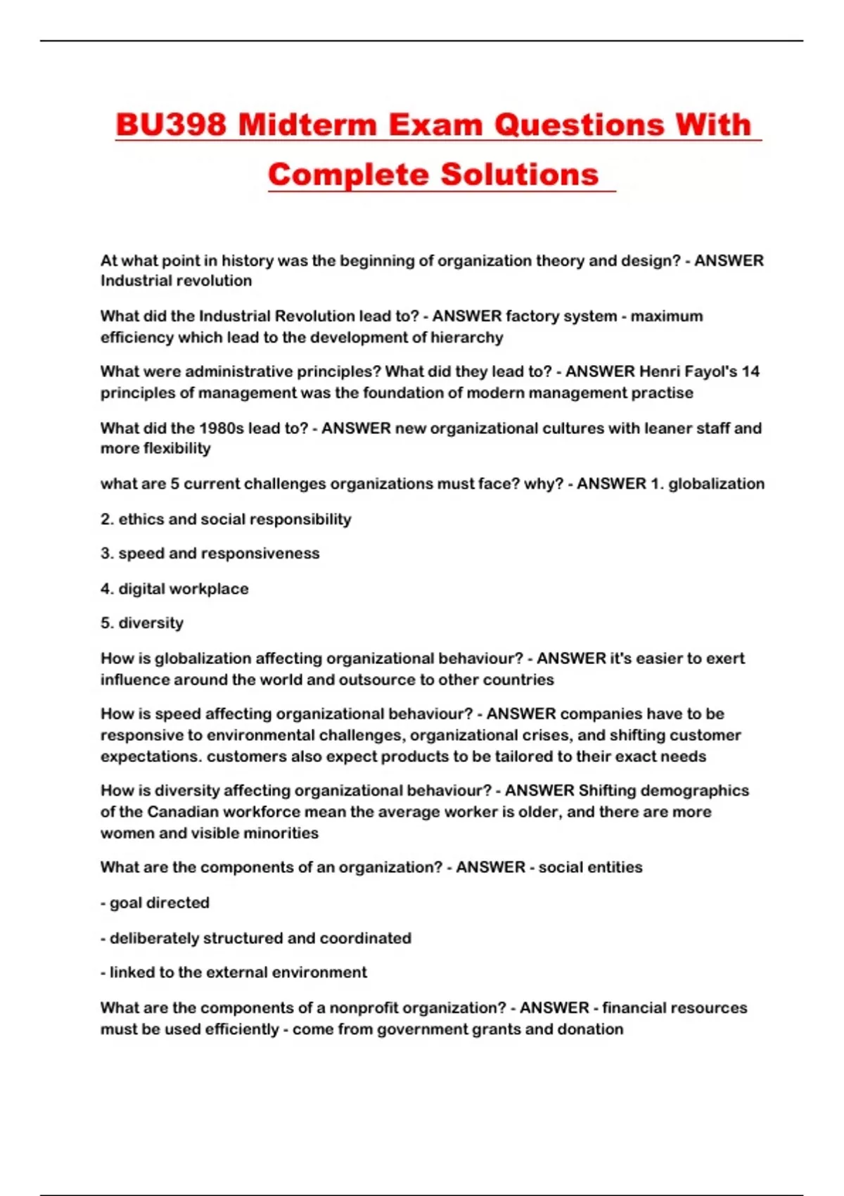 BU398 Midterm Exam Questions With