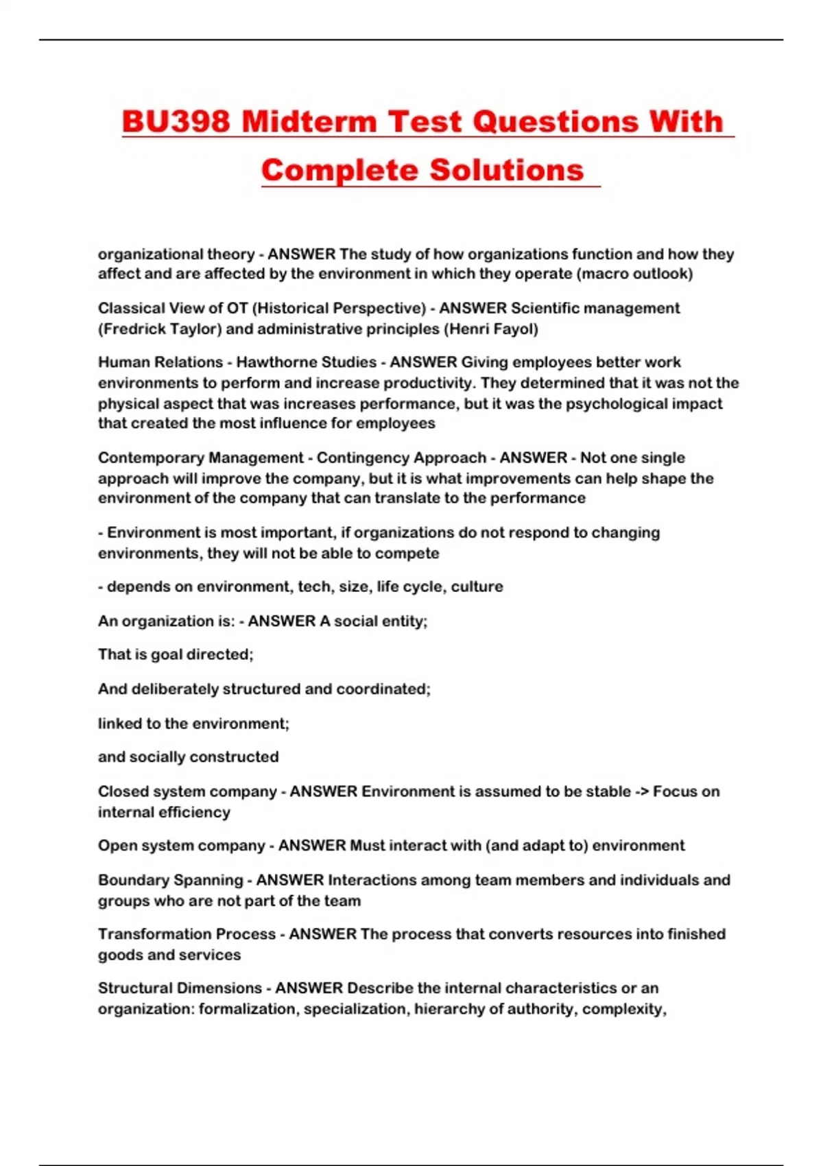 Classical View of OT (Historical Perspective) - ANSWER Scientific management
