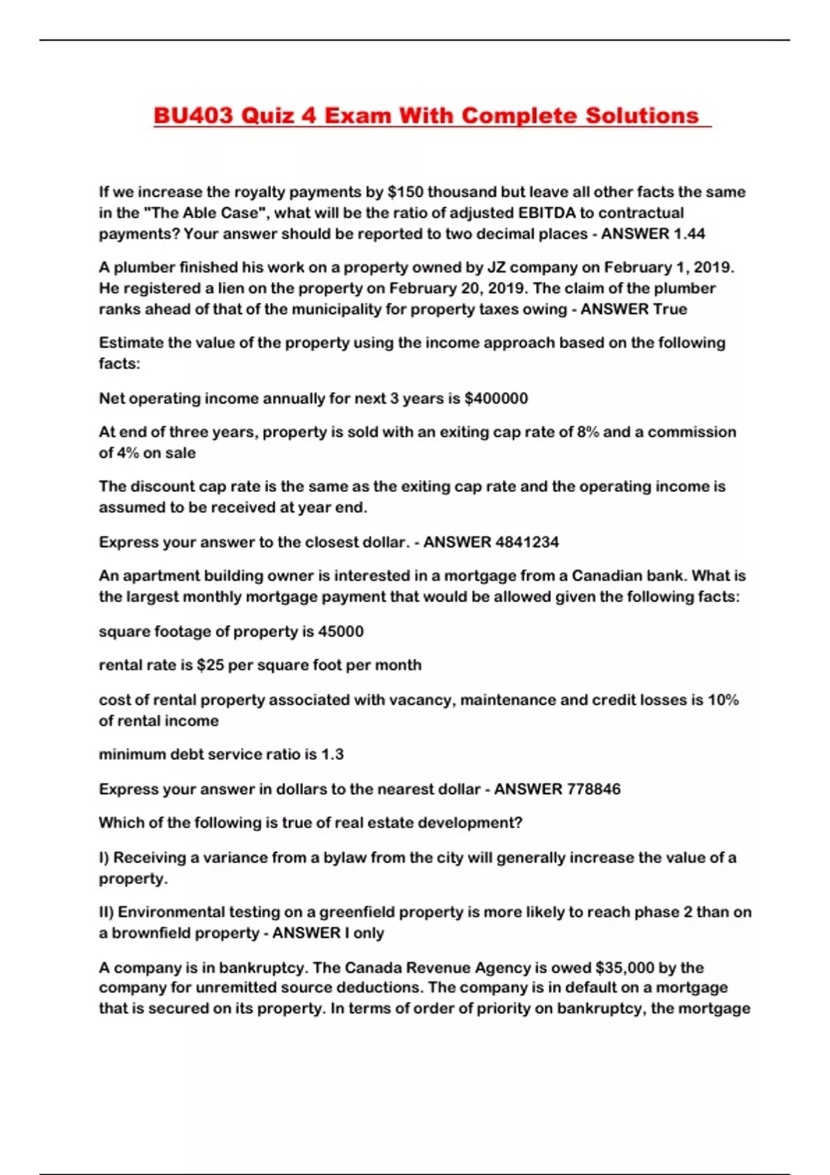 BU403 Quiz 4 Exam With Complete Solutions ...