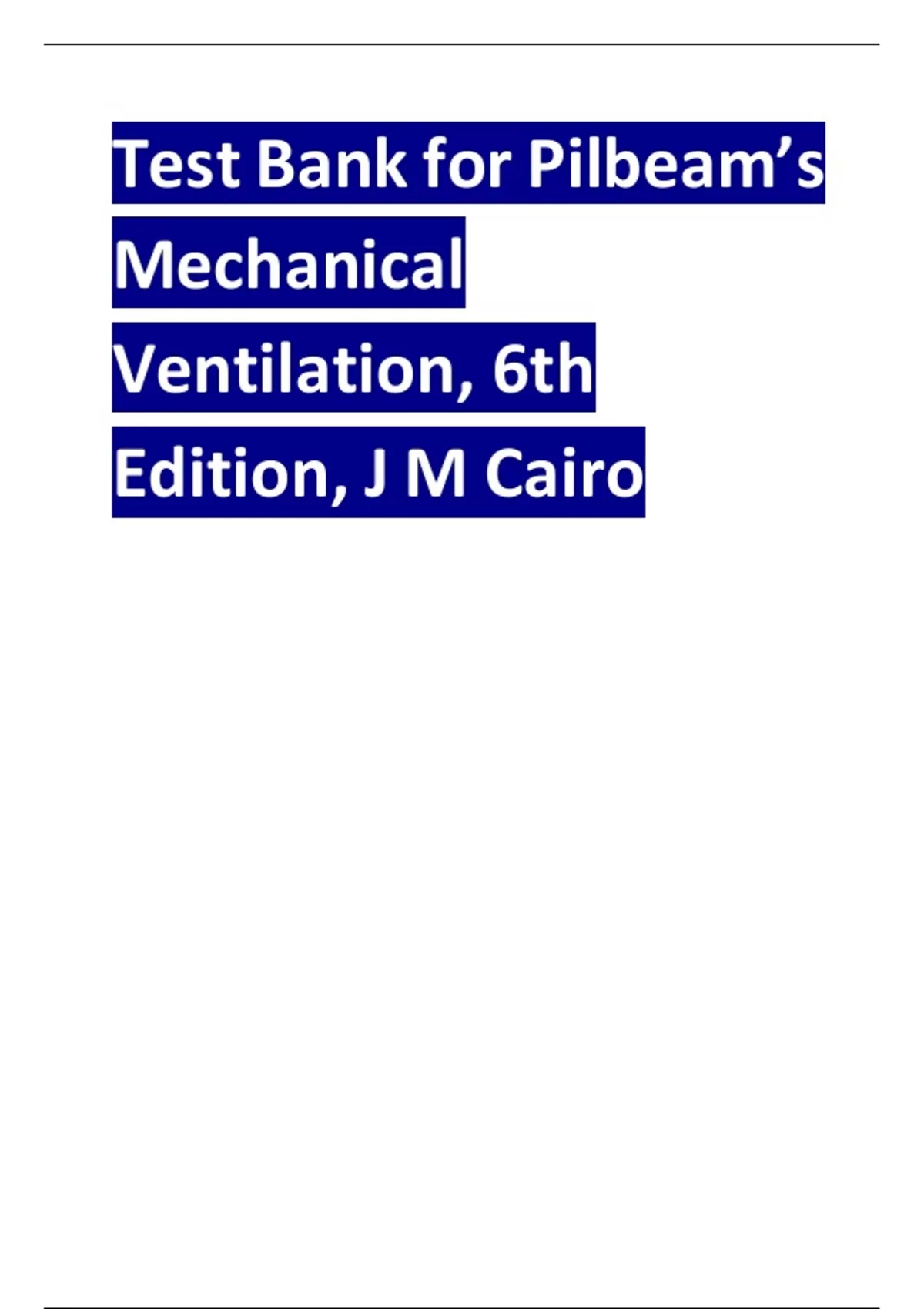 TEST BANK For Pilbeam's Mechanical Ventilation: Physiological and Clinical Applications 6th Edition by James M. Cairo ISBN 9780323871648 All Chapters Fully Covered| Complete Guide A+.