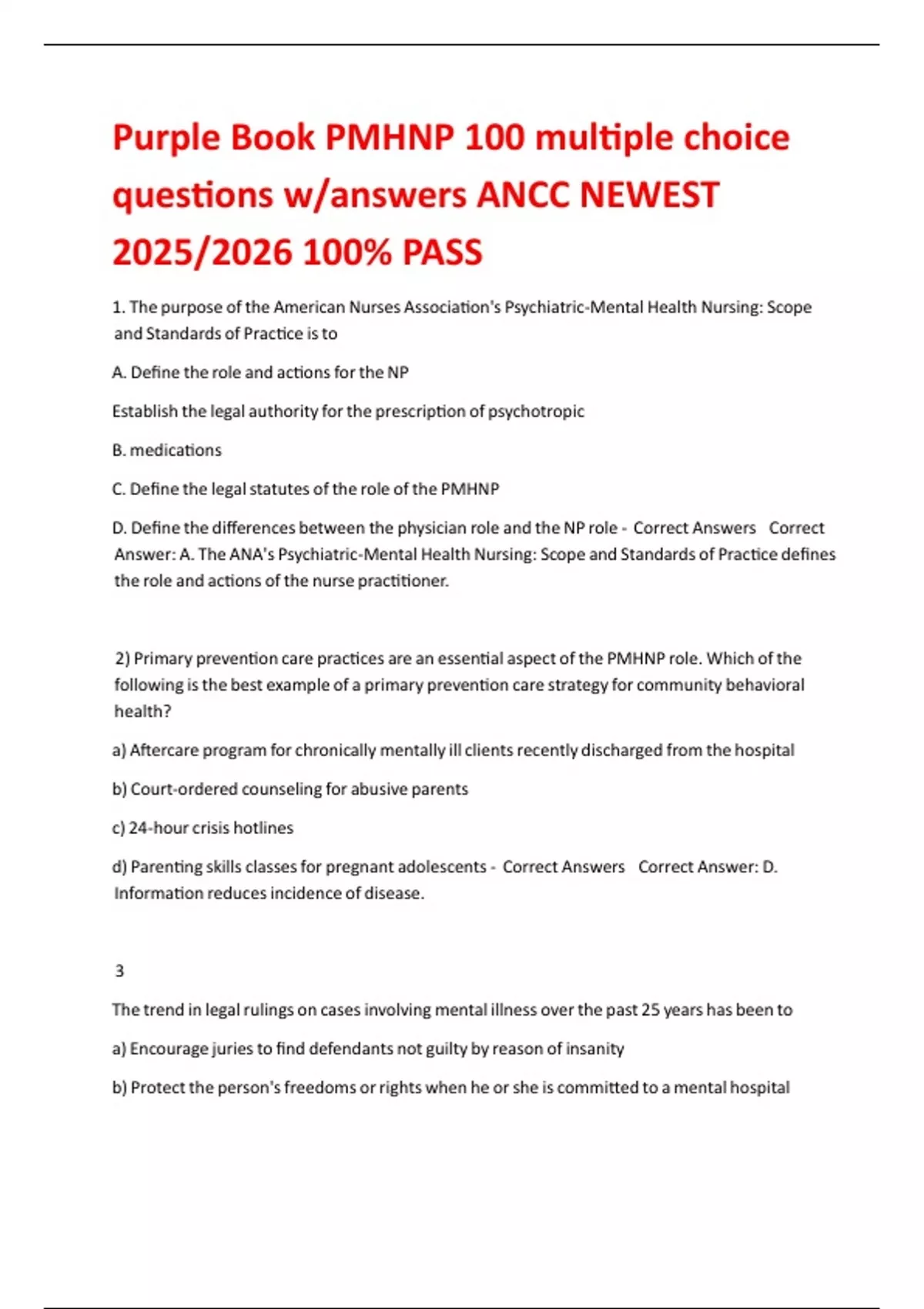 Answer: A. The ANA's Psychiatric-Mental Health Nursing: Scope and Standards of Practice defines