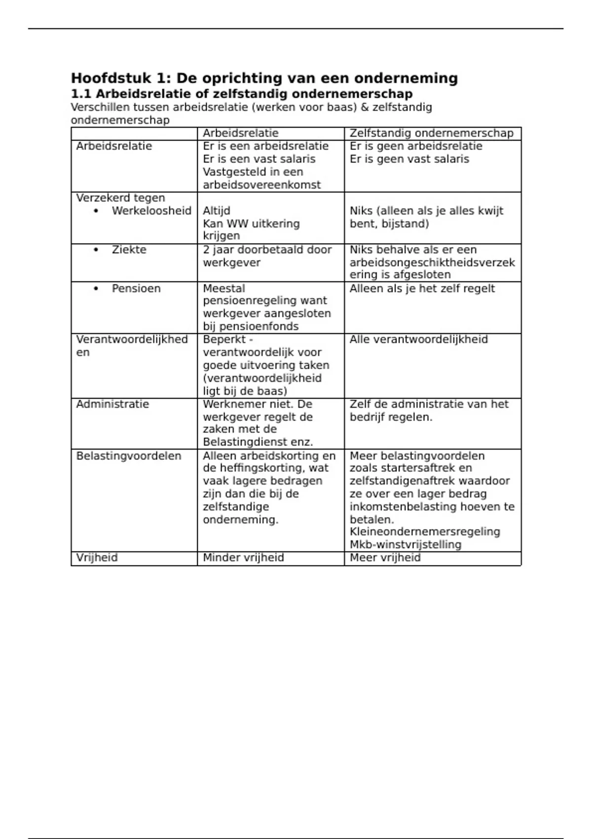 In dit document vind je een samenvatting van het boekje: Bedrijf Starten Hoofdstuk 1 van LWEO door Huib Stoffels. Hierin worden onder andere deze begrippen genoemd: arbeidsrelatie, zelfstandige onderneming, oprichtingseisen, Kamer van Koophandel, vergunningen, eenmanszaak, vennootschap onder firma (vof), zeggenschap, continuïteit, arbeidsongeschiktheidsverzekering, vennoten & firmanten, hoofdelijke aansprakelijkheid