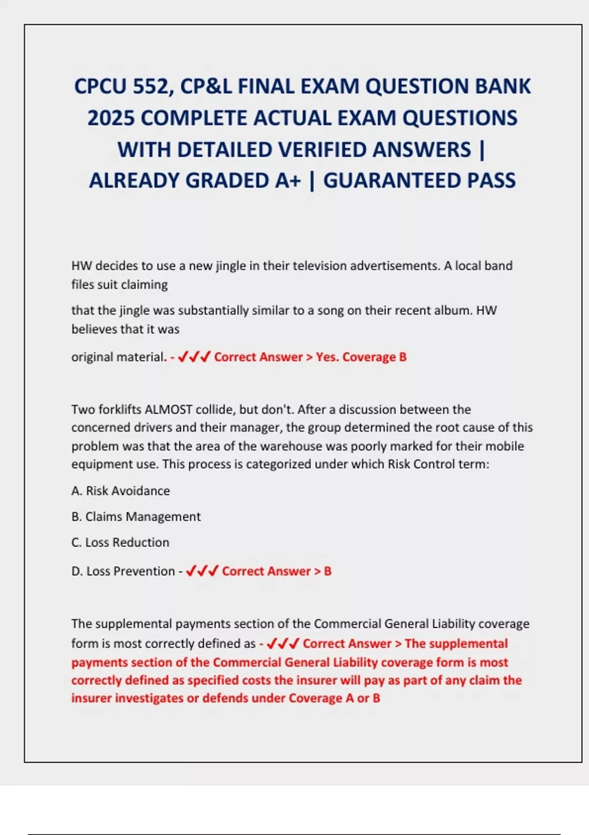 original material. - ✔✔✔ Correct Answer > Yes. Coverage B