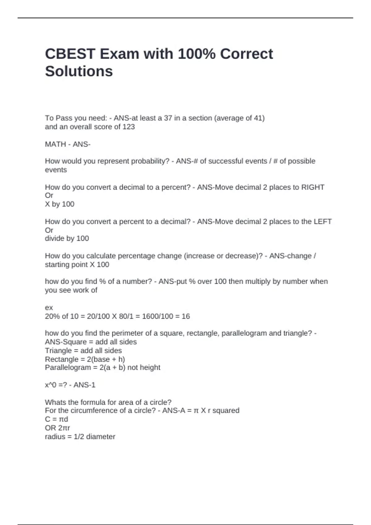 How do you convert a percent to a decimal? - ANS-Move decimal 2 places to the LEFT