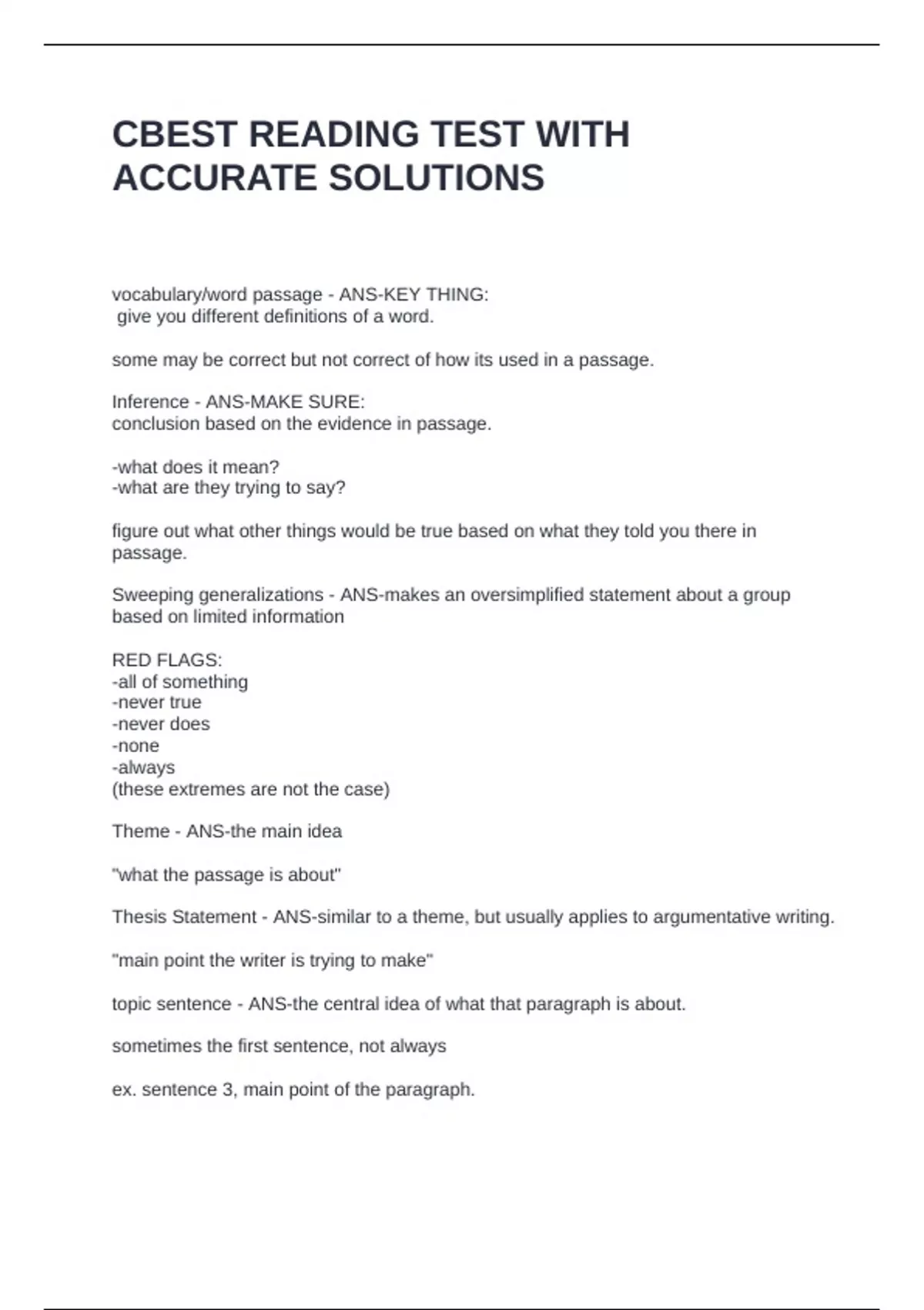CBEST READING TEST WITH