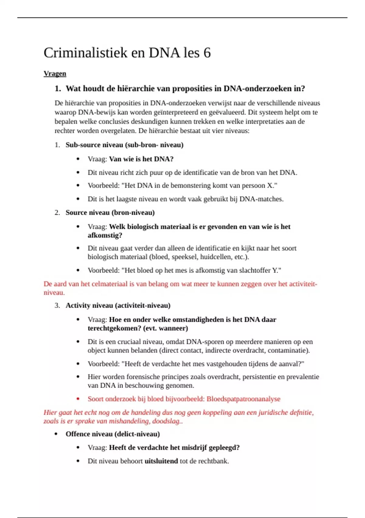 Wat houdt de hiërarchie van proposities in DNA-onderzoeken in? Wat zijn valkuilen voor een deskundige die wordt verzocht om te rapporteren op activiteitenniveau? Wie zijn er deskundig en waaruit blijkt dat? Wie kan een deskundige benoemen? Op welke wijze kan een advocaat een deskundige inschakelen? Wat is het NRGD? Wat is de LDM? Waar kan een deskundige over rapporteren of een uitspraak over doen? Wat is partijdeskundigheid?