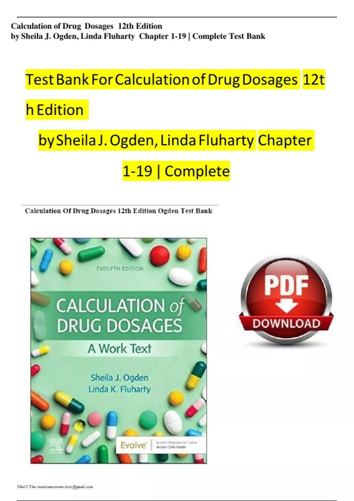 Calculation Of Drug Dosages 12th Edition Ogden Test Bank All Chapters ANS