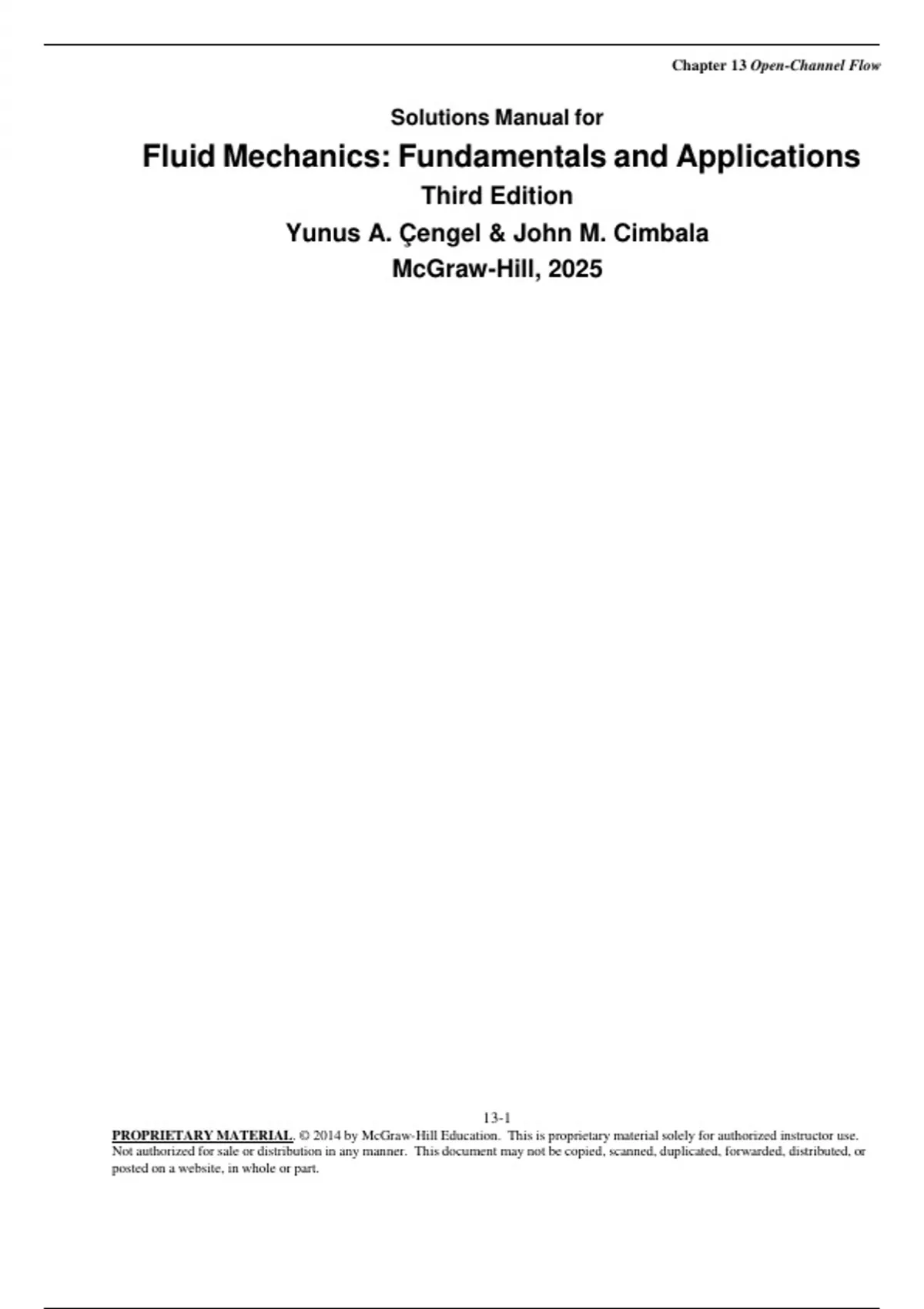 The Solution Manual for Fluid Mechanics: Fundamentals and Applications, 3rd Edition by Yunus A. Çengel and John M. Cimbala – Revised Edition provides complete, step-by-step solutions for all textbook problems and exercises. Each solution is clearly explained, helping students understand fluid mechanics principles such as pressure, buoyancy, flow dynamics, energy analysis, and thermodynamic relationships. This revised edition has been carefully updated for clarity and consistency with the core textbook, making it ideal for both engineering students and instructors. With verified answers and detailed explanations, it serves as an excellent companion for assignments, exam preparation, and conceptual learning in fluid mechanics