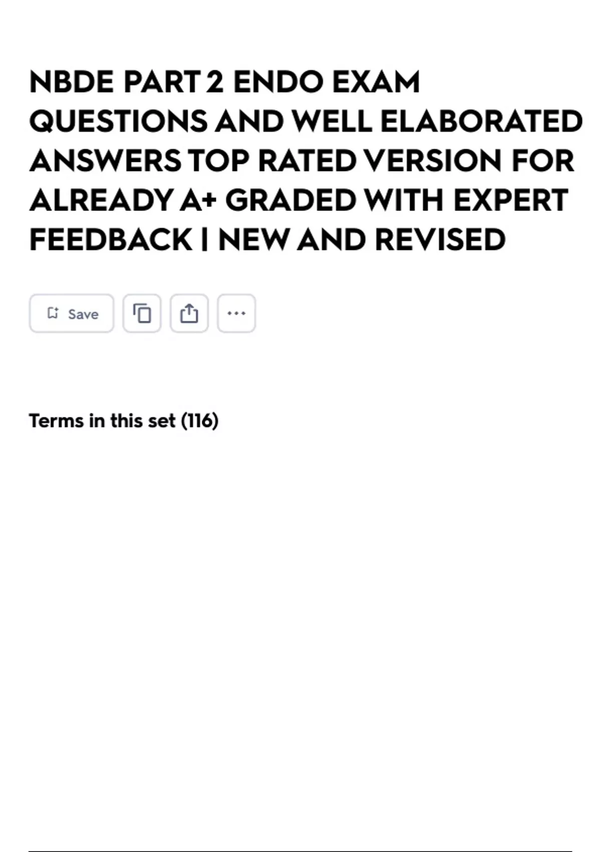 NBDE PART 2 ENDO EXAM QUESTIONS AND WELL ELABORATED ANSWERS TOP RATED VERSION FOR ALREADY A+ GRADED WITH EXPERT FEEDBACK | NEW AND REVISED