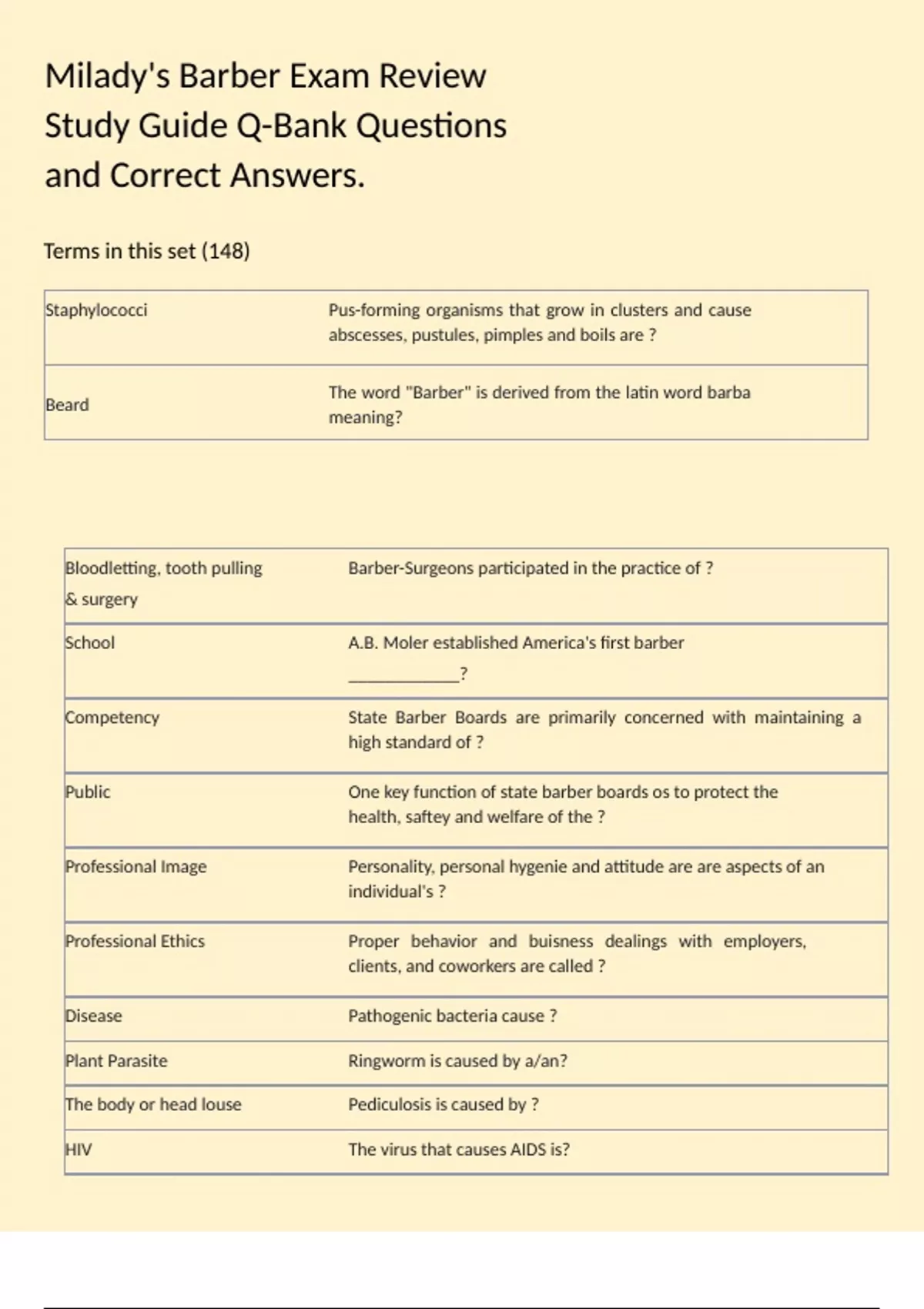 Milady's Barber Exam Review Study Guide Q-Bank Questions and Correct Answers.