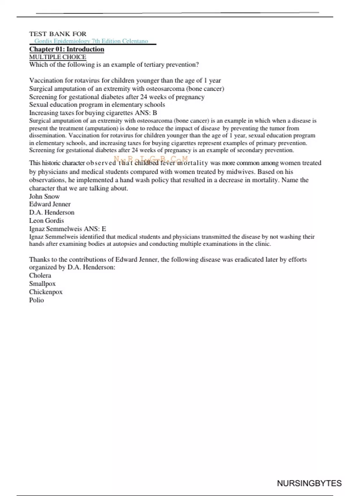 Celentano: Gordis Epidemiology, 7th Edition MULTIPLE CHOICE