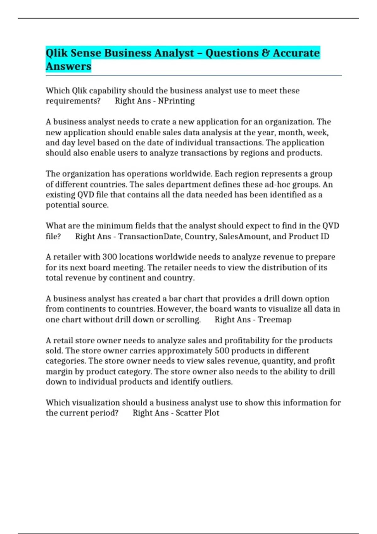 Qlik Sense Business Analyst – Questions & Accurate