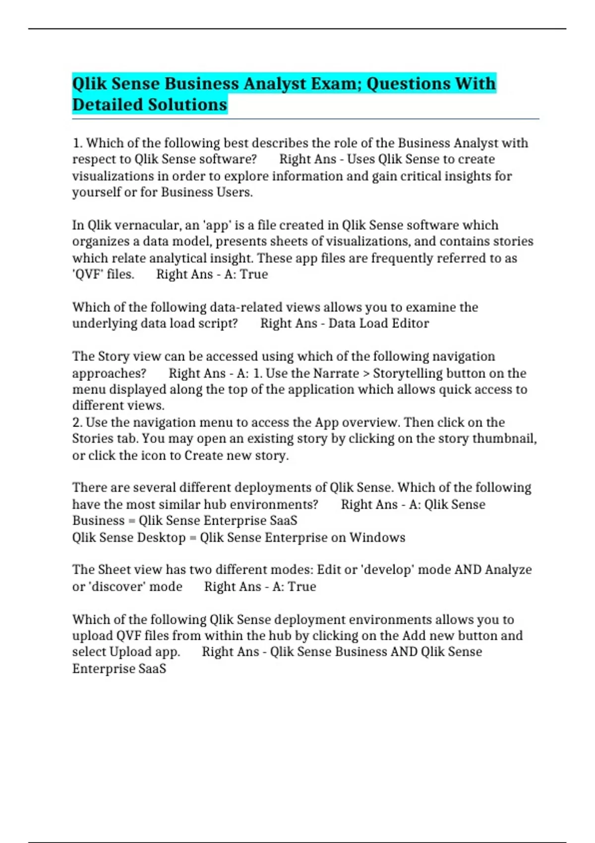 Qlik Sense Business Analyst Exam; Questions With Detailed Solutions