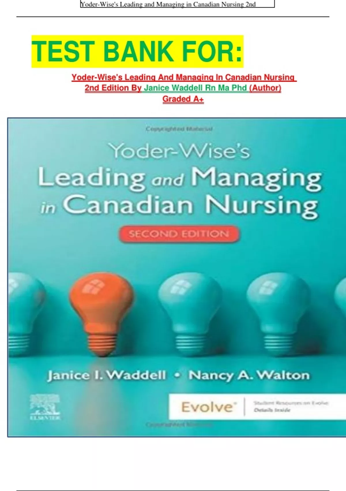TEST BANK FOR: Yoder-Wise's Leading And Managing In Canadian Nursing 2nd Edition By Janice Waddell Rn Ma Phd (Author) Graded A+