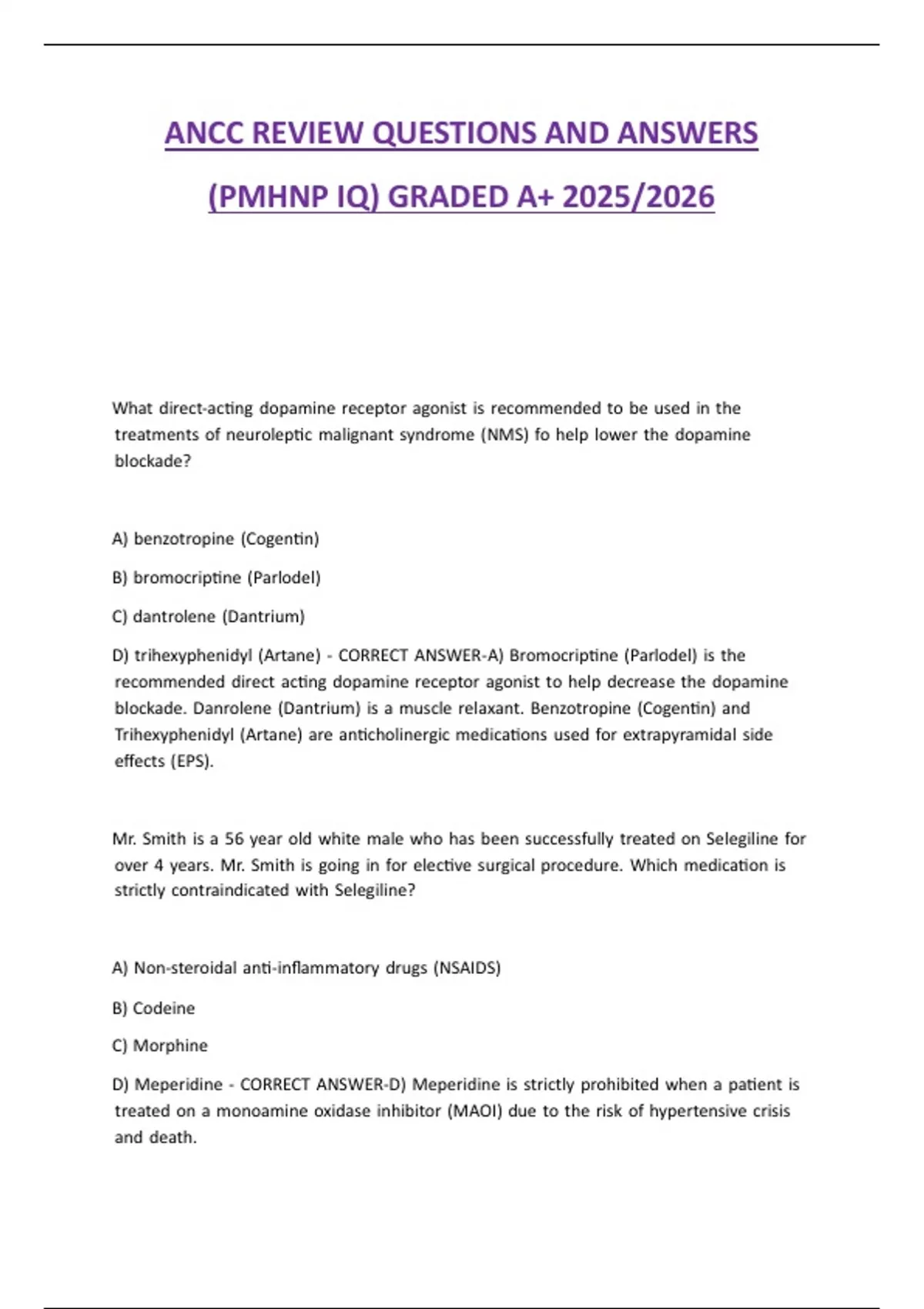 ANCC REVIEW QUESTIONS AND ANSWERS (PMHNP IQ) GRADED A+ 2025/2026ANCC REVIEW QUESTIONS AND ANSWERS (PMHNP IQ) GRADED A+ 2025/2026ANCC REVIEW QUESTIONS AND ANSWERS (PMHNP IQ) GRADED A+ 2025/2026