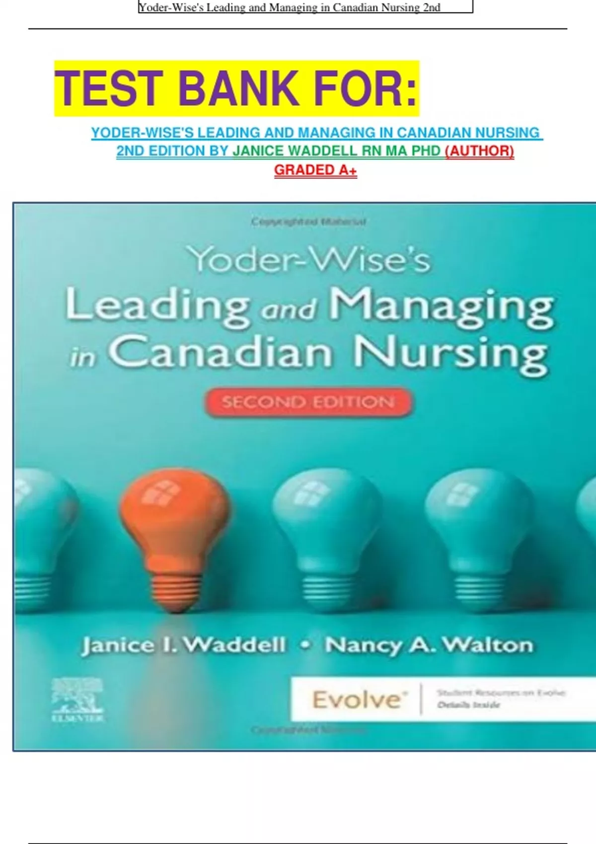 , Yoder-Wise's Leading and Managing in Canadian Nursing 2nd