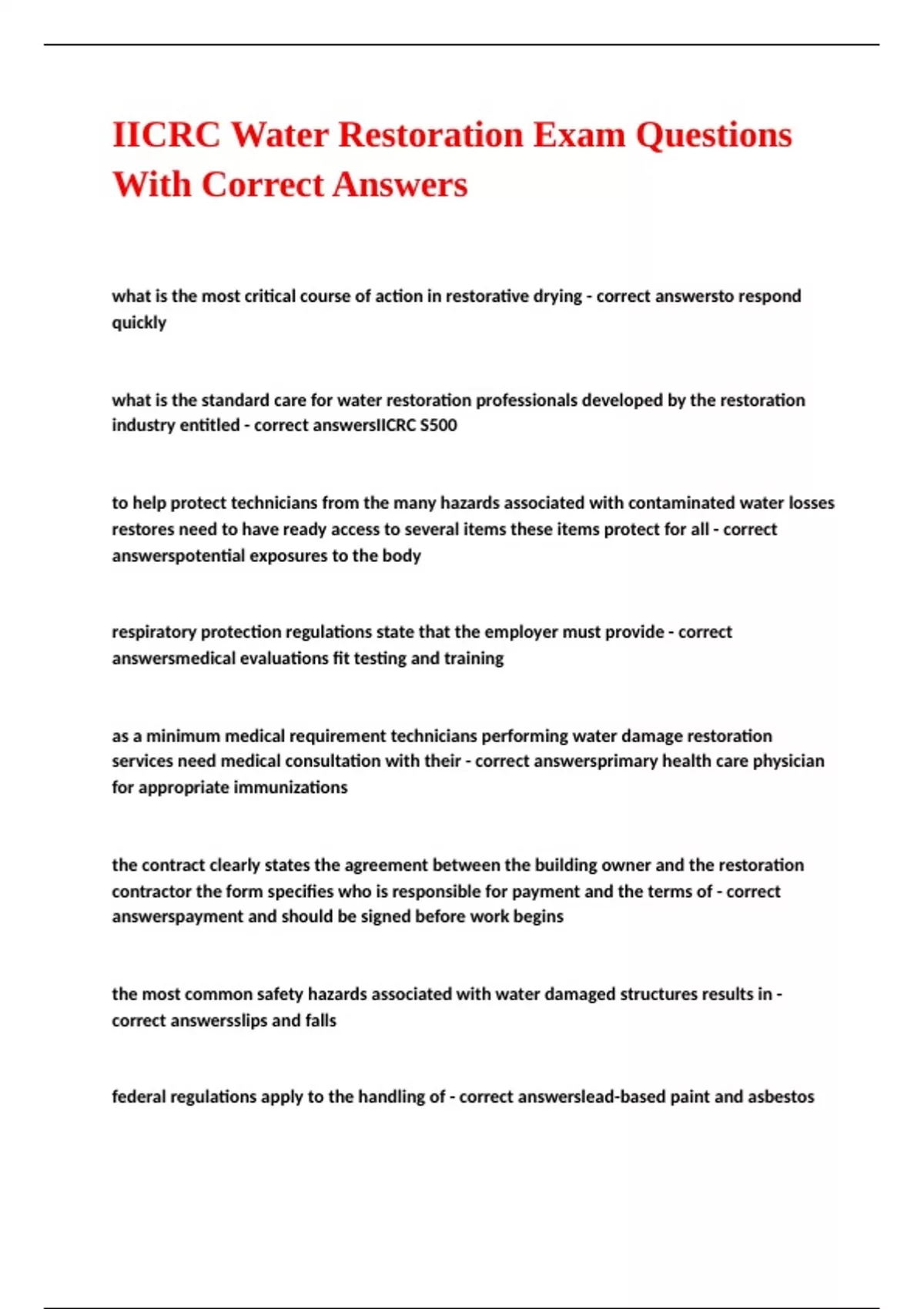 ,IICRC Water Restoration Exam Questions With Correct Answers.