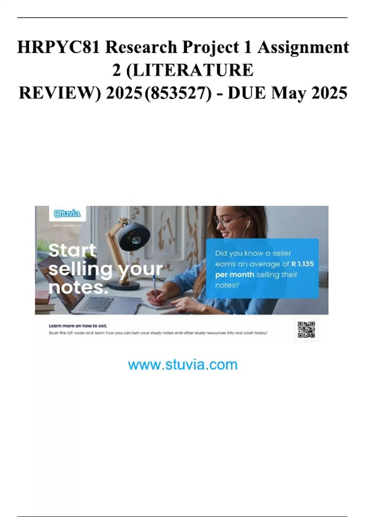 HRPYC81 Research Project 1 Assignment 2 (LITERATURE REVIEW) 2025 (853527) - DUE May