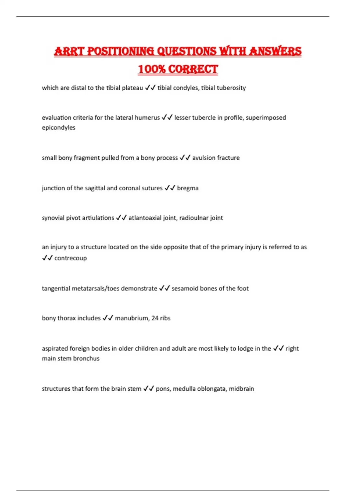 ARRT PosiTioning QuesTions wiTh AnsweRs