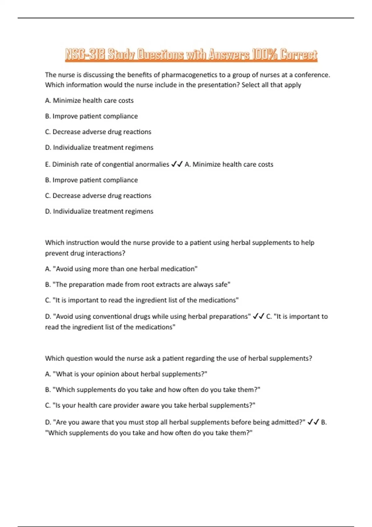 D. "Are you aware that you must stop all herbal supplements before being admitted?" ✔✔ B.
