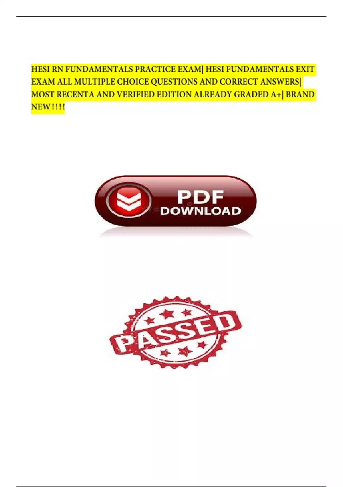 HESI RN FUNDAMENTALS PRACTICE EXAM| HESI FUNDAMENTALS EXIT EXAM ALL MULTIPLE CHOICE QUESTIONS AND CORRECT ANSWERS| MOST RECENTA AND VERIFIED EDITION ALREADY GRADED A+| BRAND NEW!!!!