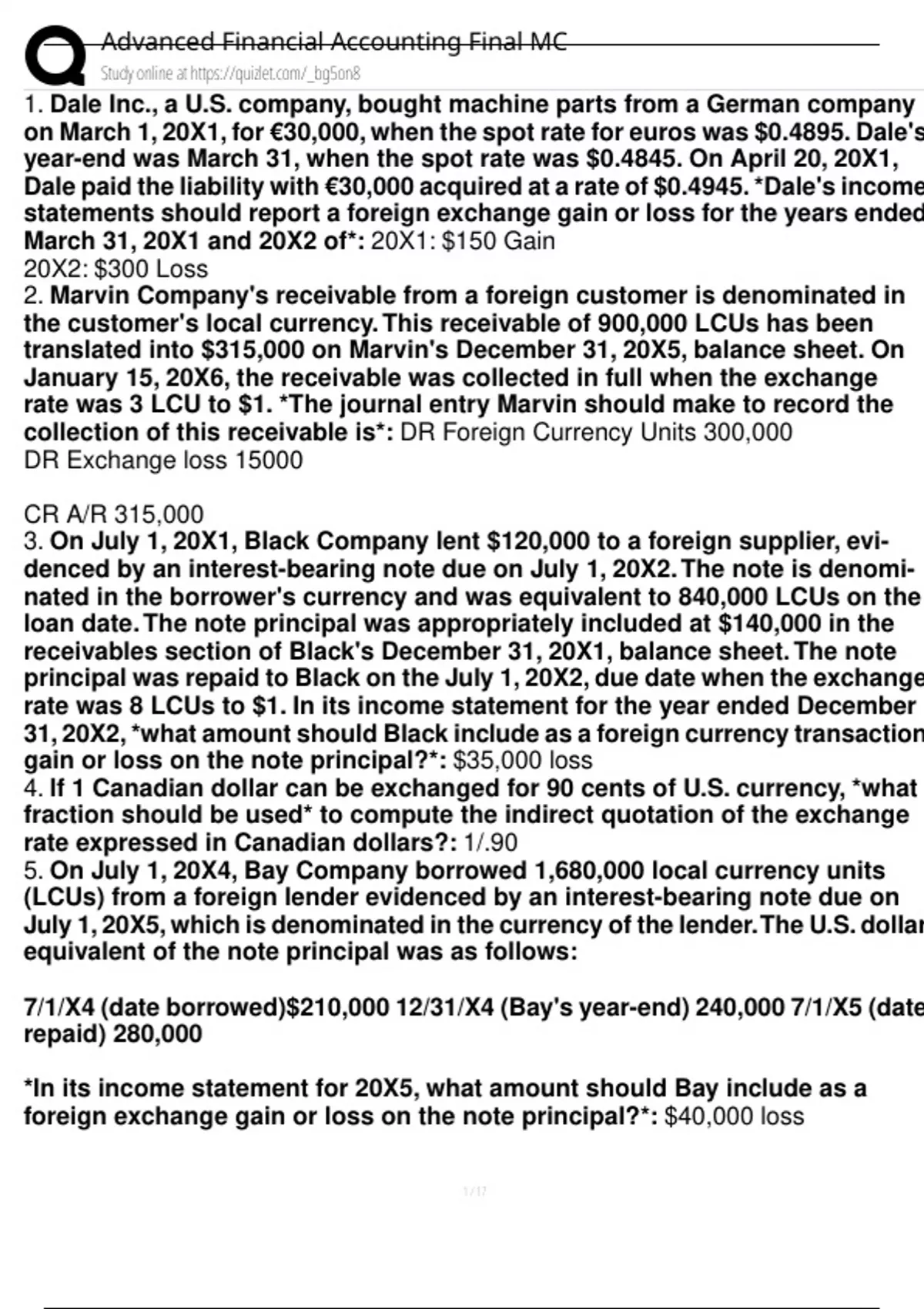 , Advanced Financial Accounting Final MC