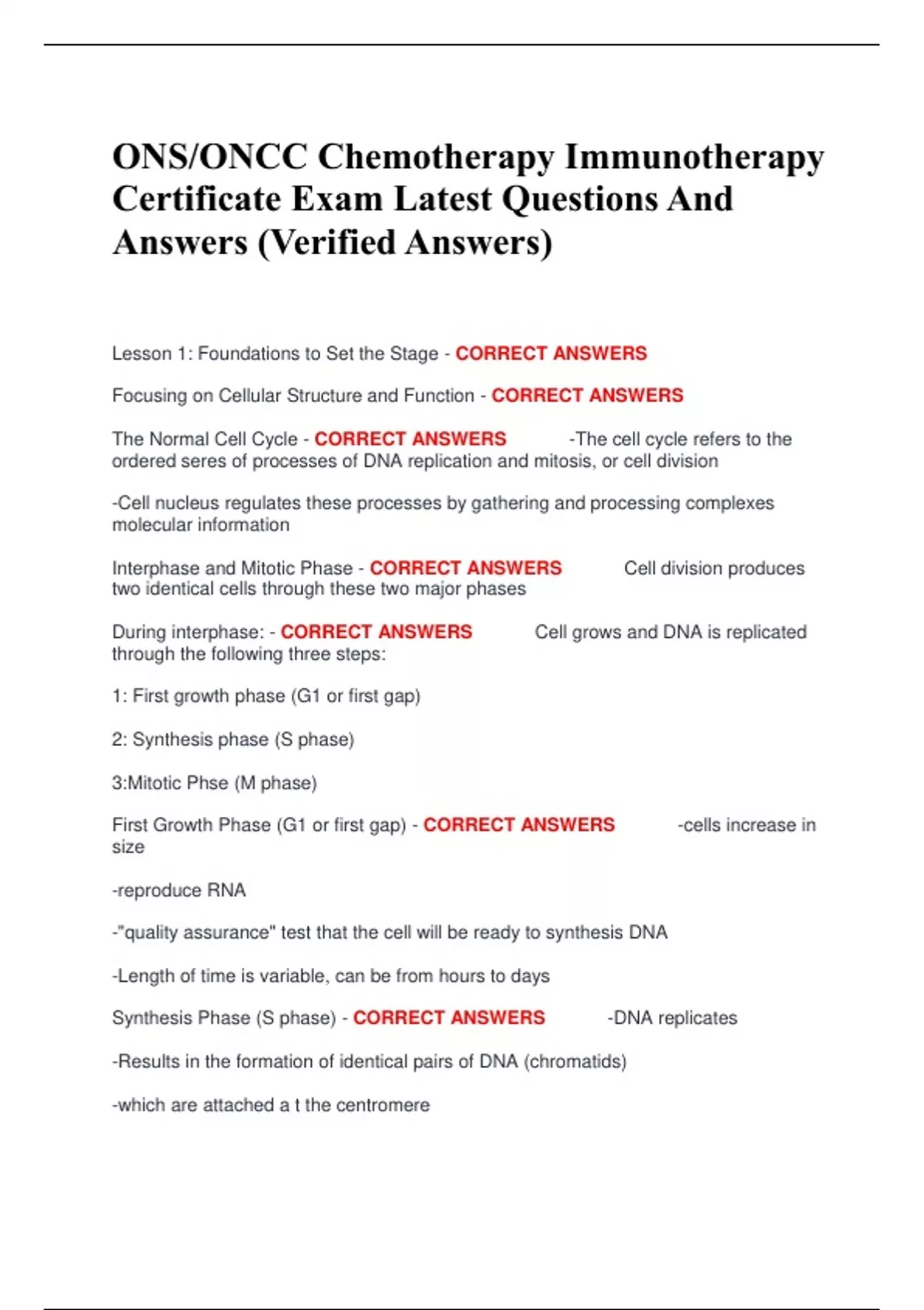 During interphase: - CORRECT ANSWERS Cell grows and DNA is replicated