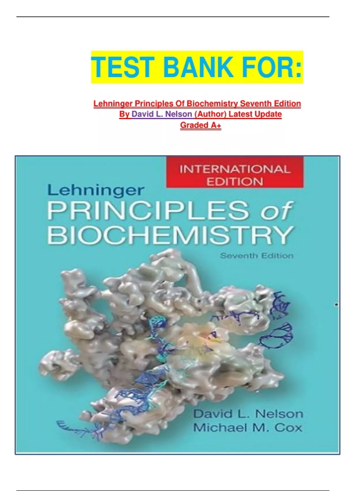 TEST BANK FOR: Lehninger Principles Of Biochemistry Seventh Edition By David L. Nelson (Author) Latest Update Graded A+